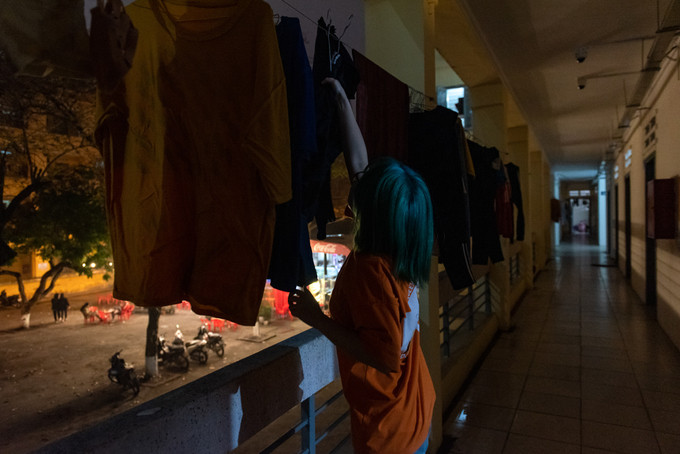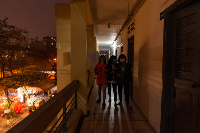 Hành lang khu ký túc giờ đây yên tĩnh và thiếu vắng những dây phơi quần áo của sinh viên. Phía dưới sân lác đác vài người qua lại, khu ăn uống cũng không còn đông người như trước nữa.