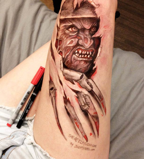 Thay vì dùng giấy, Jody Steel - một nữ sinh tại Boston, lại khiến nhiều người phải ngỡ ngàng khi vẽ lên đùi những bức chân dung hay con vật cực kỳ sống động.