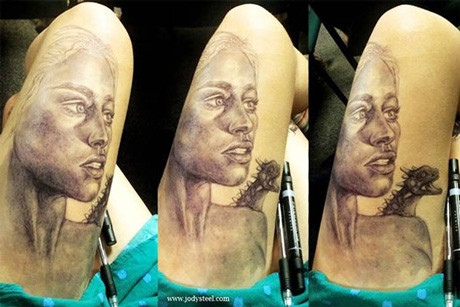 | Chân dung Jody Steel, cô gái có sở thích vẻ trên đùi "có một không hai".. |