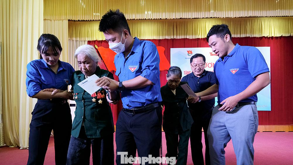 | "Hơn 20 năm qua, báo Tiền Phong thường xuyên có các hoạt động đền ơn đáp nghĩa, sẻ chia với các cựu thanh niên xung phong có hoàn cảnh khó khăn. Dịp lễ tết và ngày truyền thống của lực lượng, báo vận động nguồn lực cũng như sự đồng hành của các đơn vị để tổ chức hoạt động giao lưu, thăm hỏi và tặng quà cựu thanh niên xung phong. Năm nay, báo Tiền Phong đã thăm hỏi 14 trung tâm chăm sóc người có công và có những hoạt động hỗ trợ với những trường hợp khó khăn", nhà báo Lê Xuân Sơn cho biết thêm. |