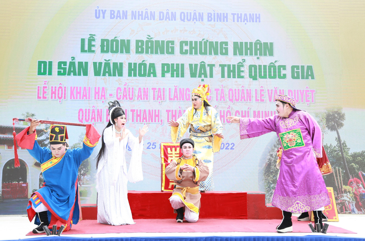 Sáng 25/8, UBND quận Bình Thạnh (TPHCM) tổ chức lễ đón nhận Bằng chứng nhận di sản văn hóa phi vật thể quốc gia Lễ hội Khai hạ - Cầu an tại Lăng Đức Tả quân Lê Văn Duyệt.