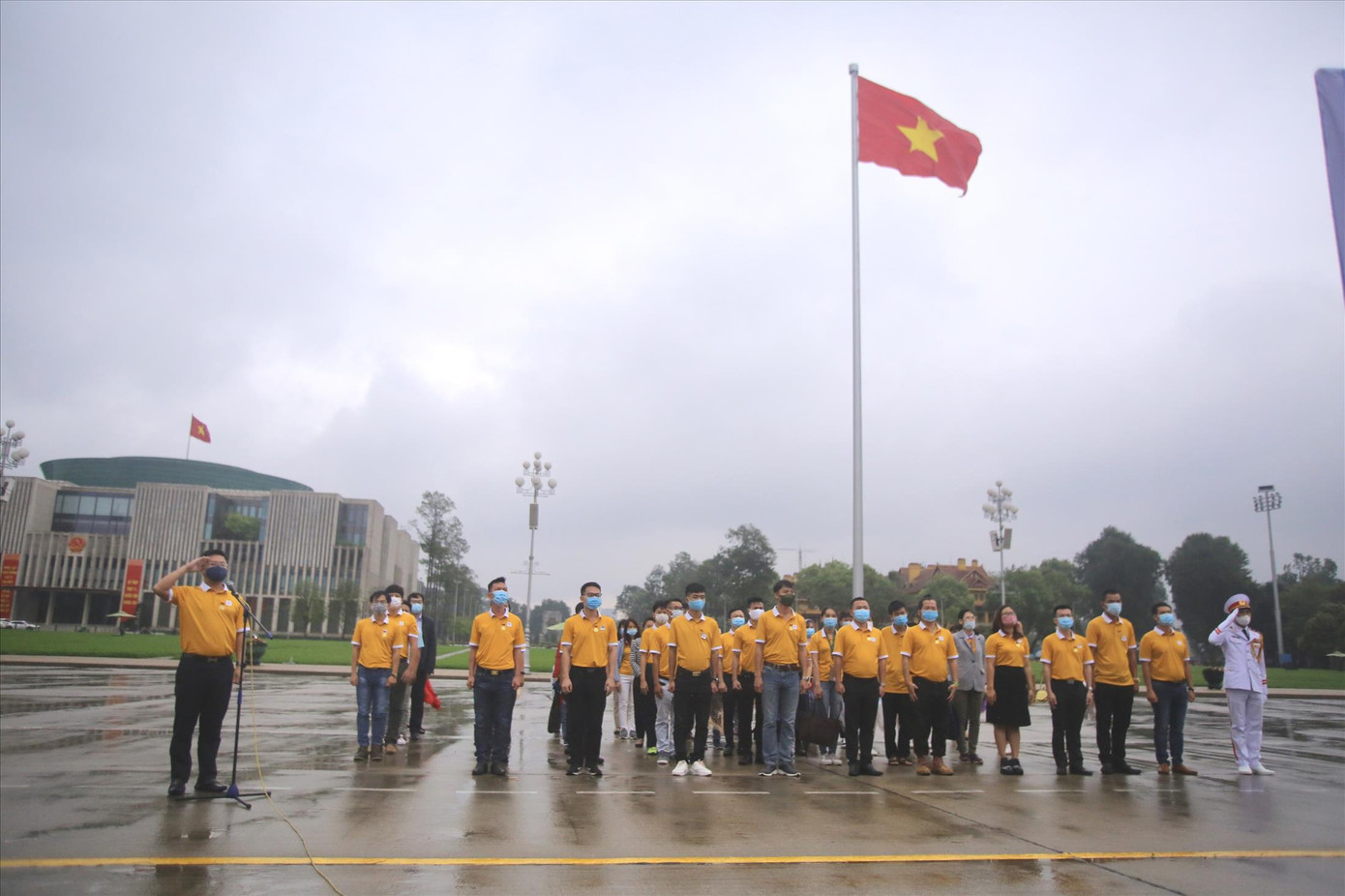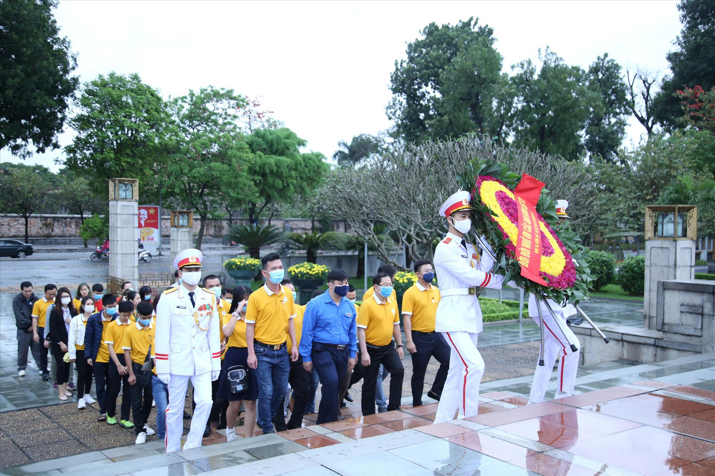 Ðoàn đại biểu gương mặt trẻ tiêu biểu và triển vọng cùng lãnh đạo, cán bộ T.Ư Ðoàn, báo Tiền Phong tại Quảng trường Ba Ðình lịch sử, tham dự Lễ báo công và viếng Lăng Chủ tịch Hồ Chí Minh.