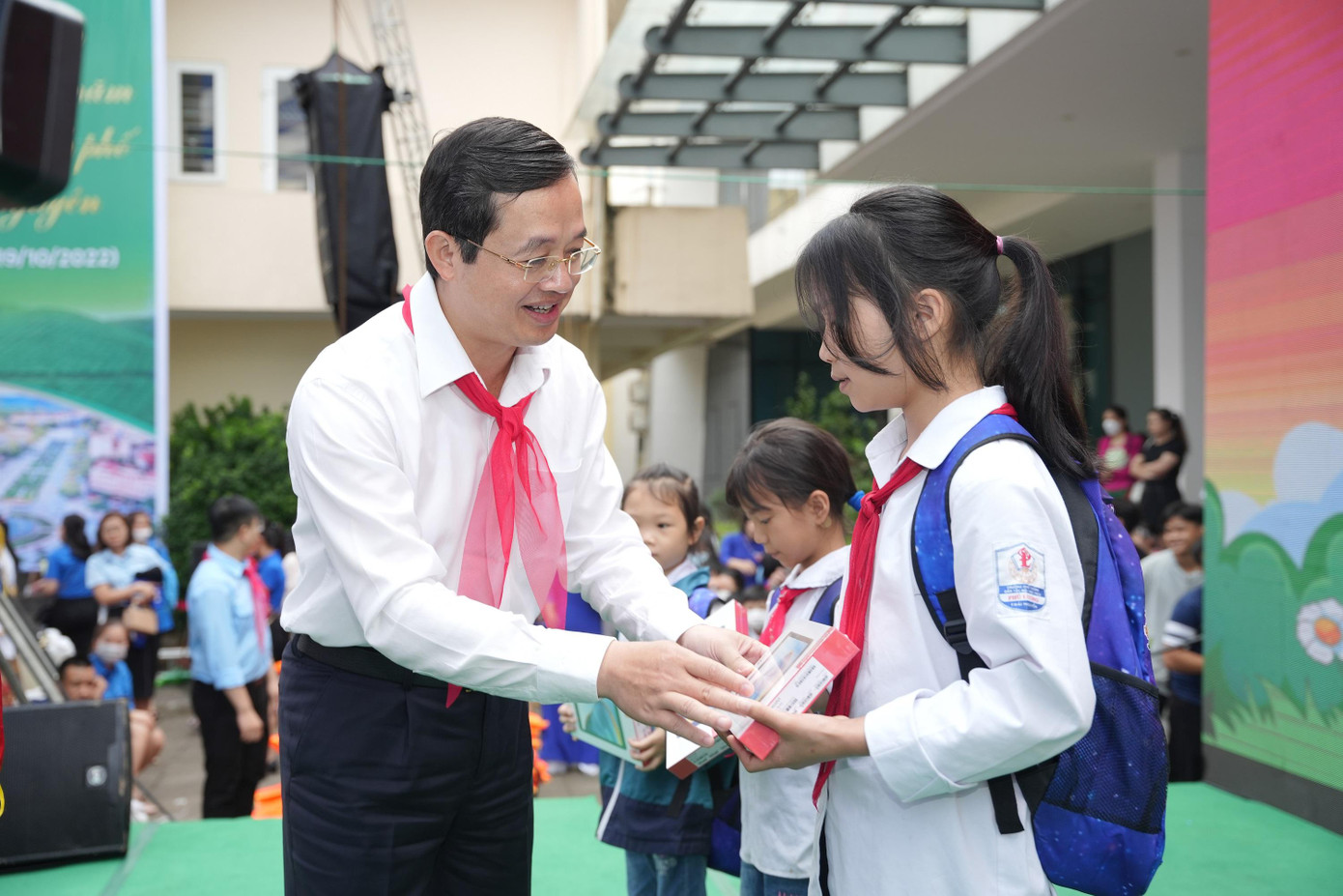 | Trao tặng thiết bị máy tính bảng cho các em thiếu nhi |