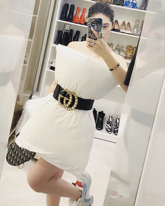 Chưa dừng lại ở đó, đây còn là dịp để hội gái xinh khoe triệt để vóc dáng của mình, nhất là phần vai gợi cảm và đôi chân thon gọn, nuột nà. Sau trào lưu đặt đứng son trên xương quai xanh hay dùng tai nghe quấn ngang vòng eo thì thử thách dùng gối làm váy này sẽ nhanh chóng lên ngôi.
