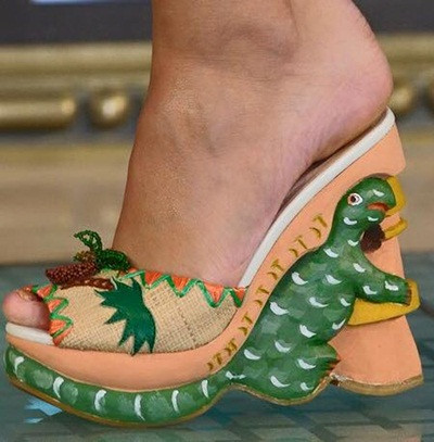 Kiểu dáng phổ biến nhất là giày cao gót, giày đế xuồng có phần đế là chú khủng long.