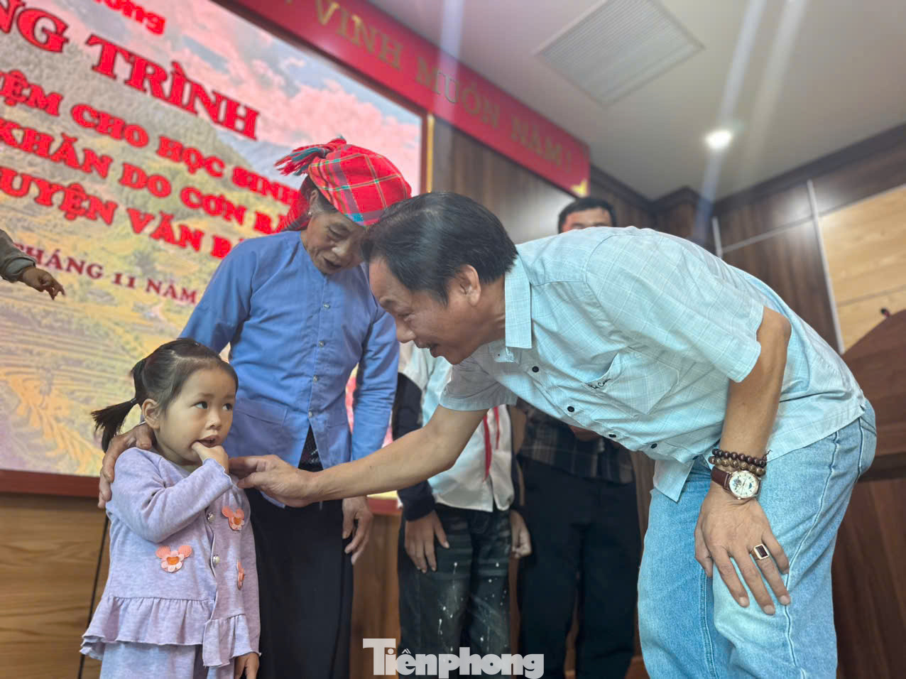 | Báo Tiền Phong đã phối hợp với UBND huyện, Huyện Đoàn Văn Bàn (Lào Cai) và các đơn vị tổ chức trao sổ tiết kiệm do các nhà hảo tâm tặng các em học sinh mồ côi, có hoàn cảnh đặc biệt khó khăn do bão Yagi gây ra trên địa bàn. |