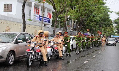 Cảnh sát Đà Nẵng tuần tra bằng xe đạp sáng ngày 15/12. Ảnh: Đào Phan