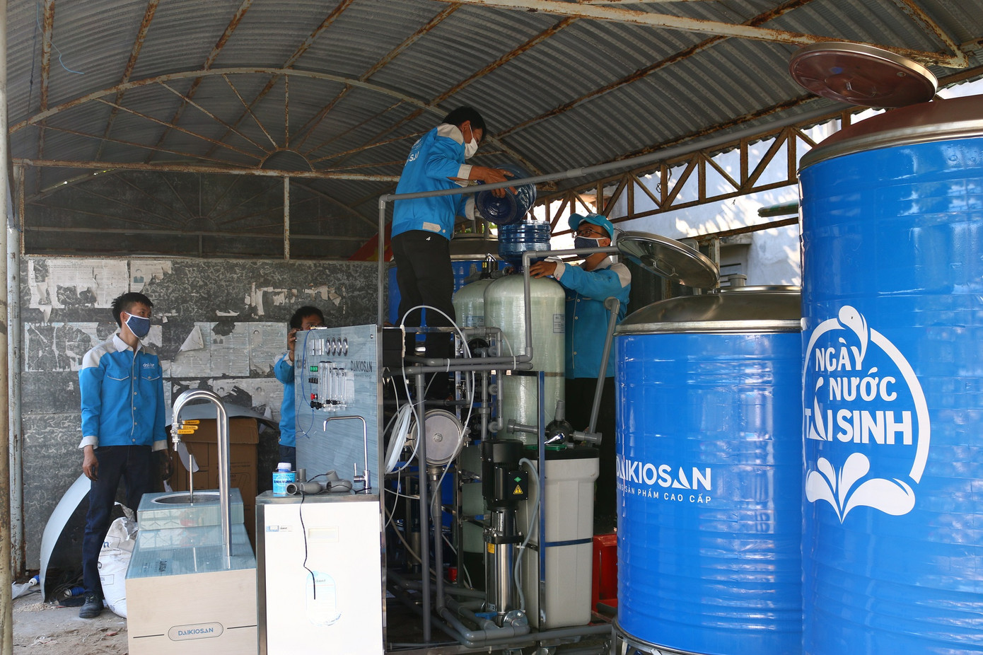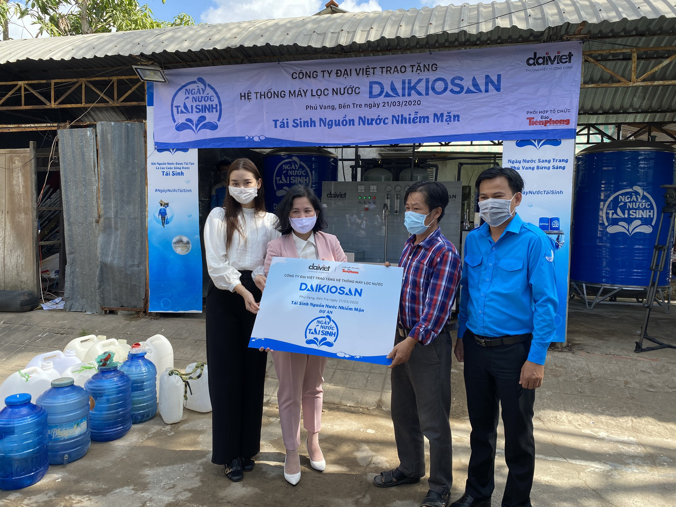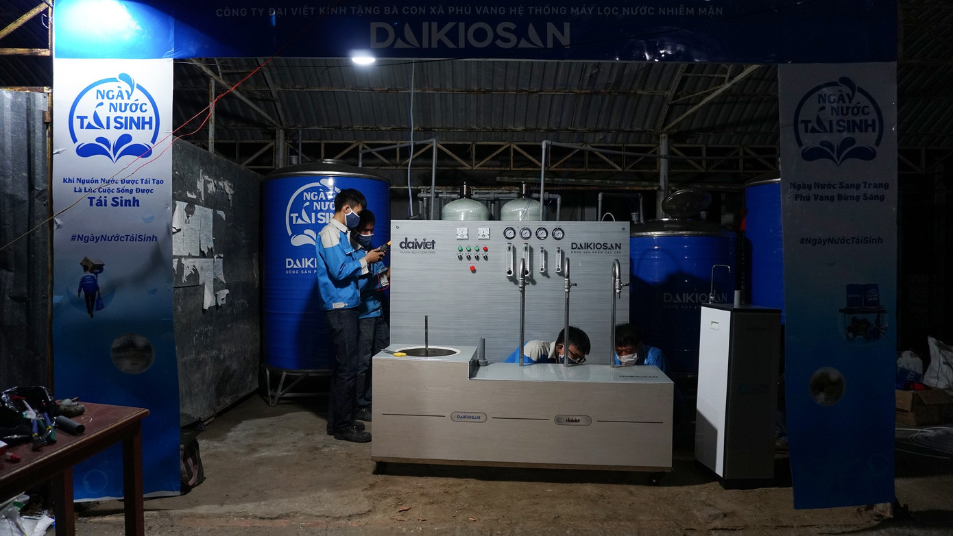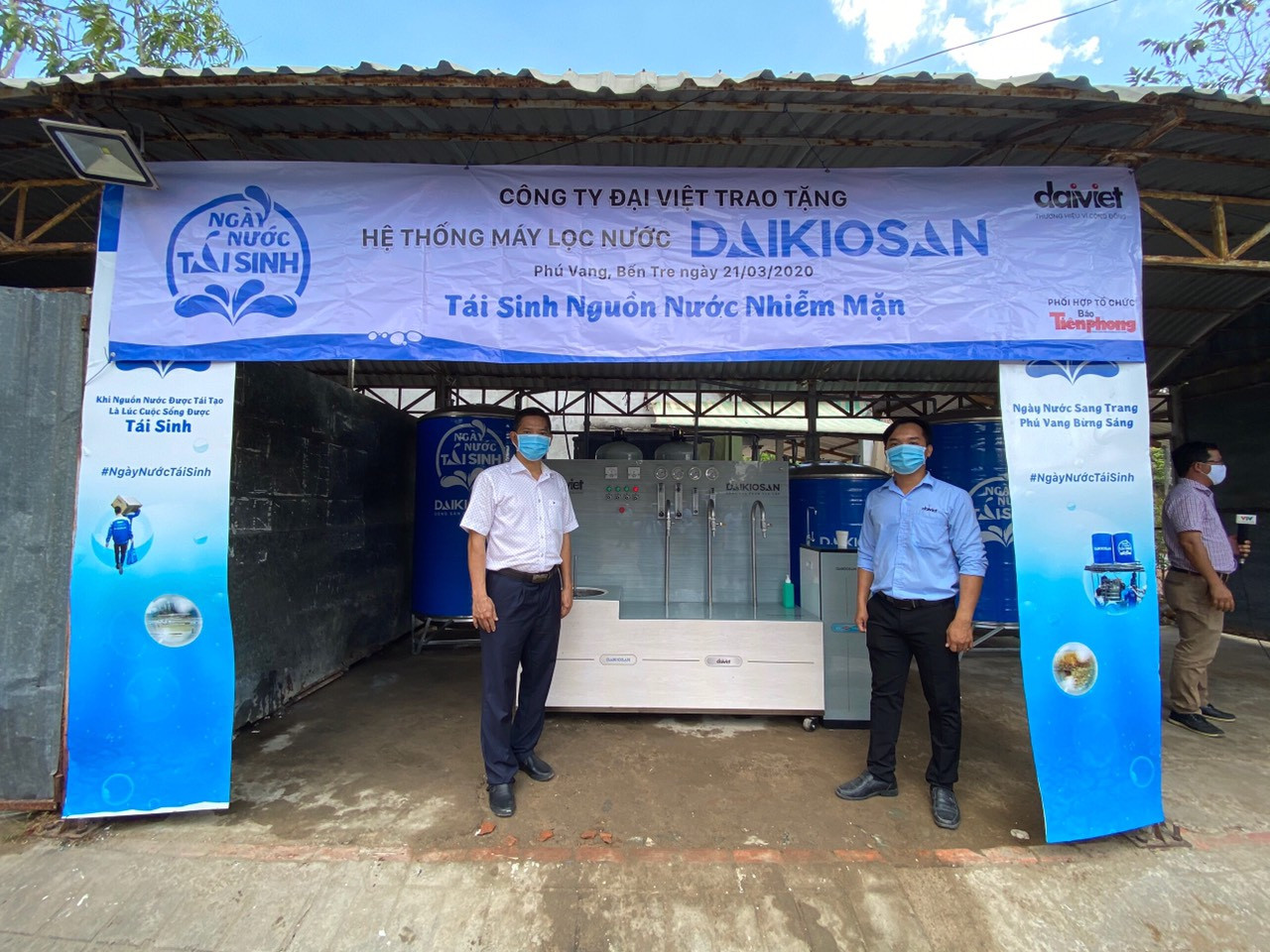 Ngay tại buổi lễ công bố, Ban tổ chức dự án Ngày nước tái sinh cũng đã tổ chức khánh thành và bàn giao hệ thống máy lọc nước Daikiosan / Makano đầu tiên cho người dân ngay tại trụ sở UBND xã Phú Vang, huyện Bình Đại, tỉnh Bến Tre.