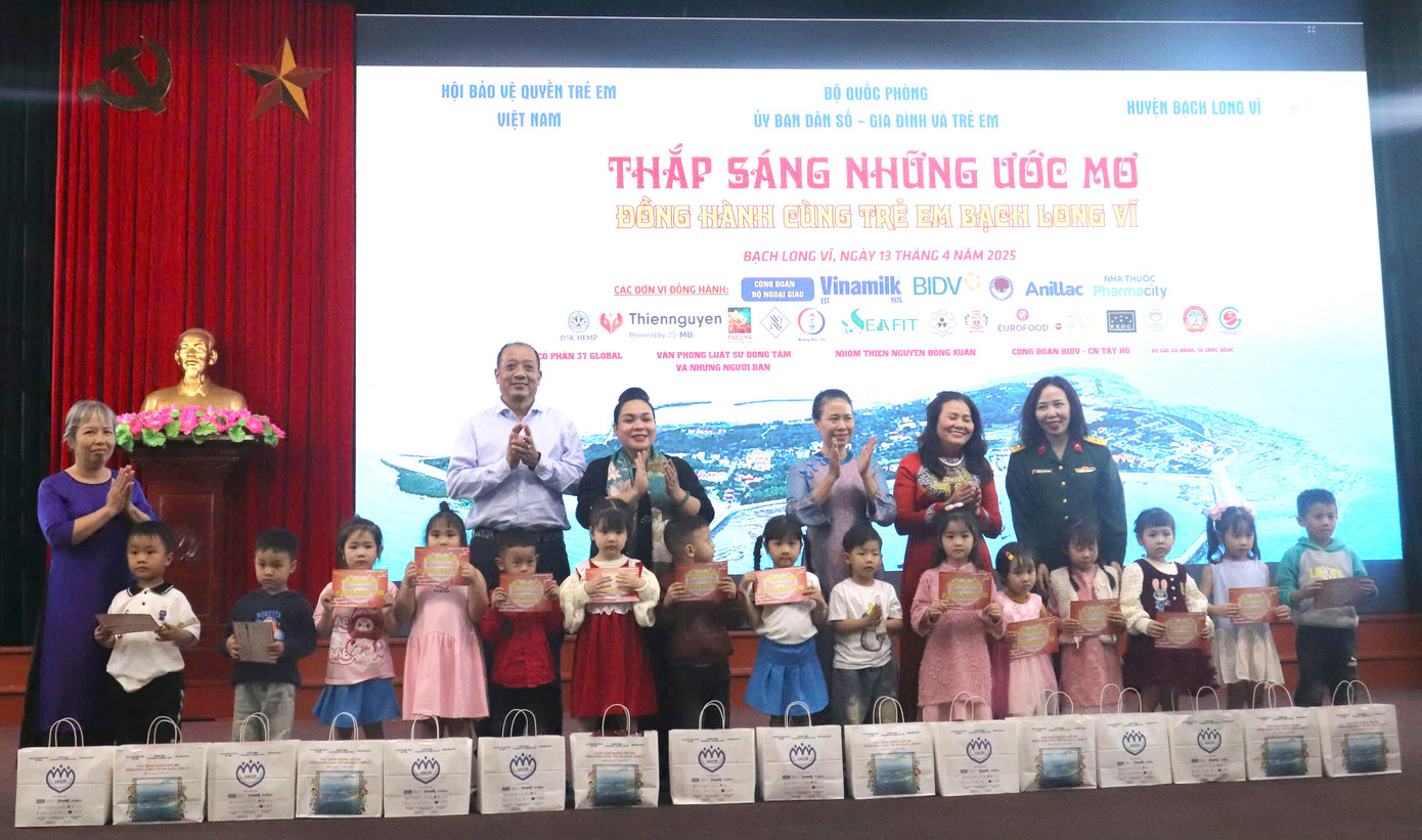 Hội Bảo vệ quyền trẻ em Việt Nam vừa phối hợp với Ủy ban Dân số, Gia đình và Trẻ em - Bộ Quốc phòng, Huyện đảo Bạch Long Vĩ tổ chức chương trình “Thắp sáng những ước mơ - Đồng hành cùng trẻ em Bạch Long Vĩ”.