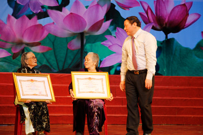 TPO - Ngày 27/4, tại Nhà Văn hóa trung tâm tỉnh Quảng Trị đã diễn ra Lễ trao tặng danh hiệu Bà mẹ Việt Nam Anh hùng cho 2 mẹ và truy tặng cho 259 mẹ; trao Huân chương Độc Lập cho 12 gia đình có nhiều liệt sỹ hi sinh trong các cuộc kháng chiến.