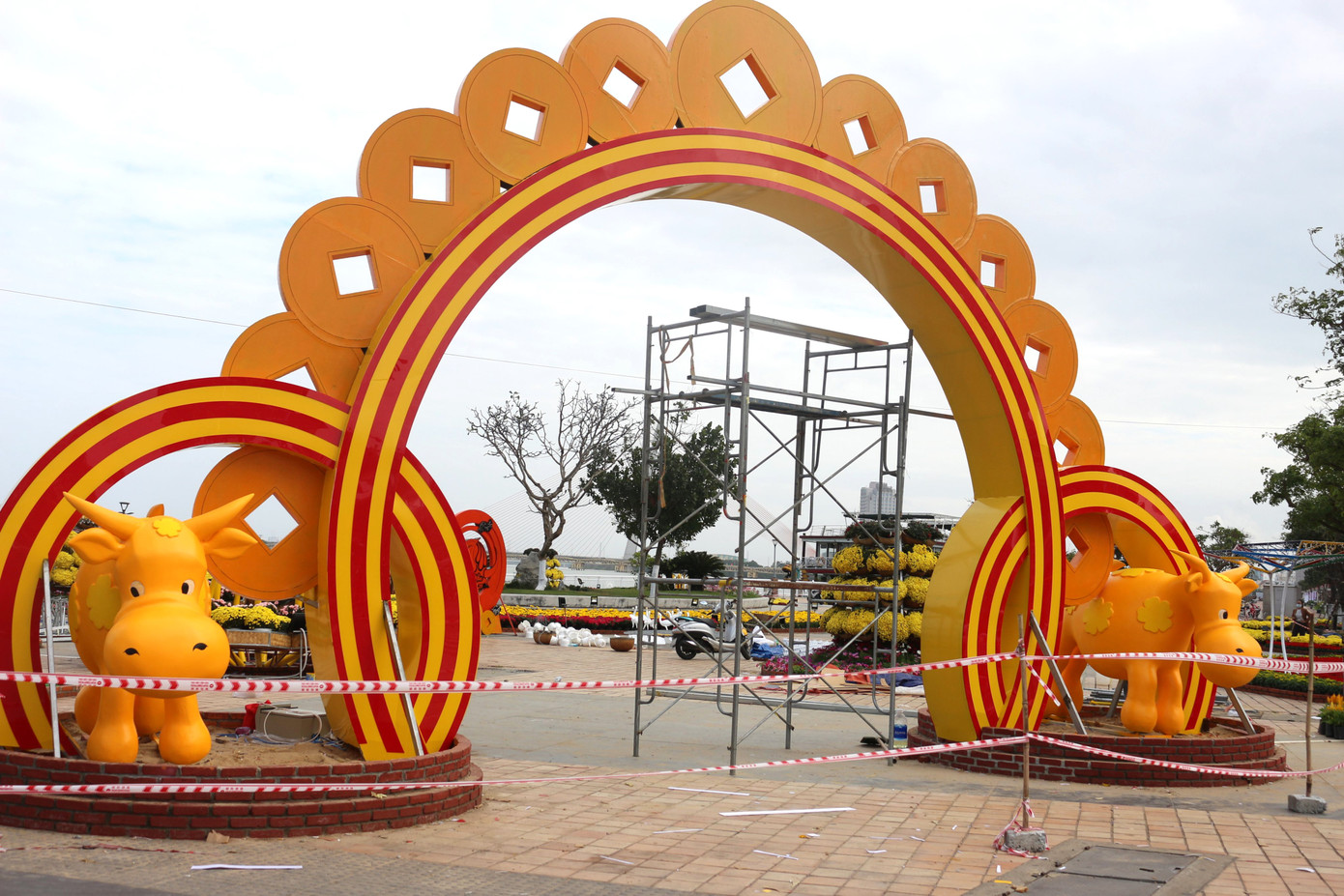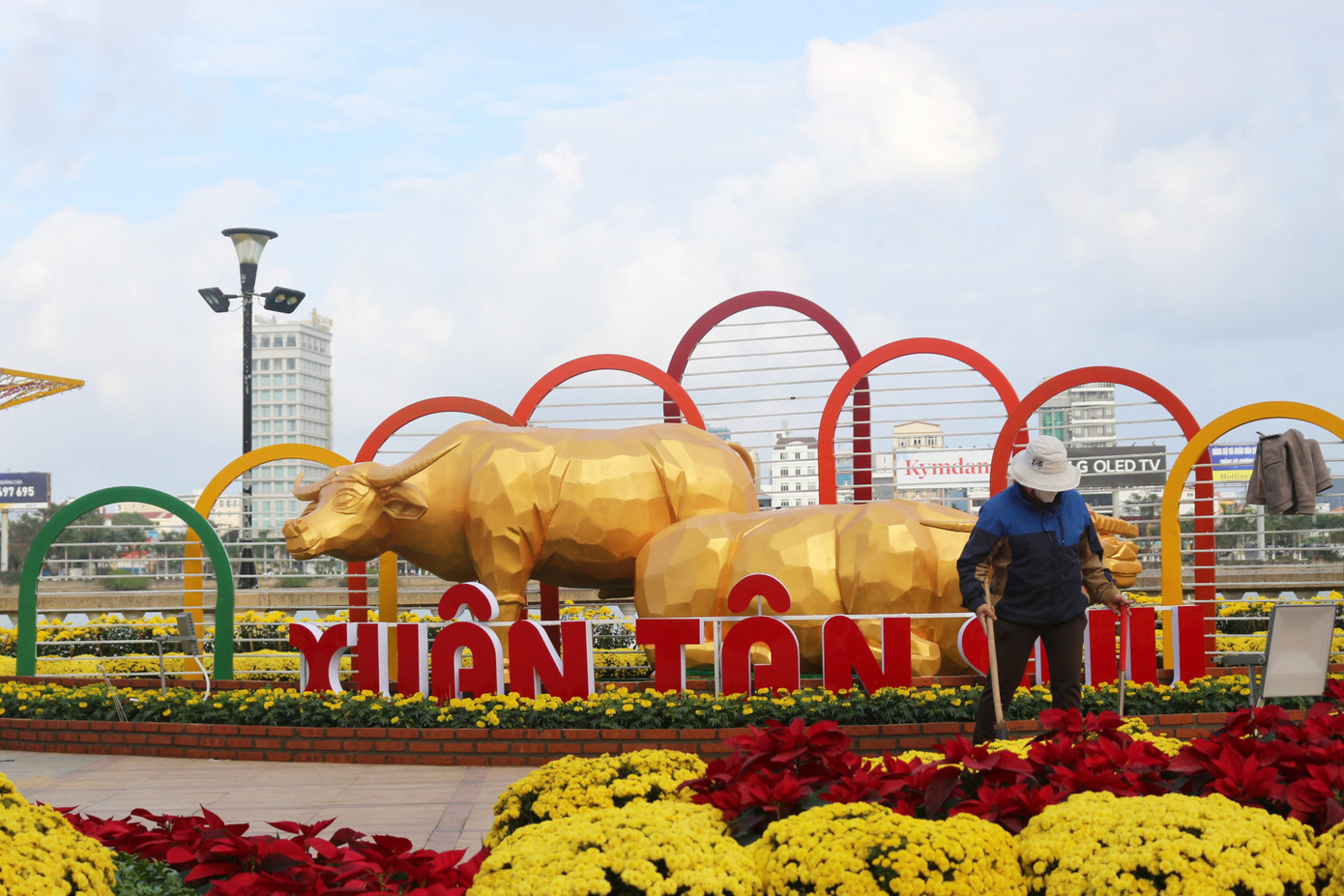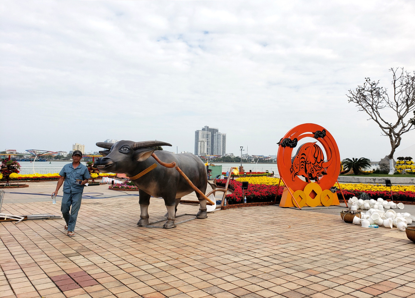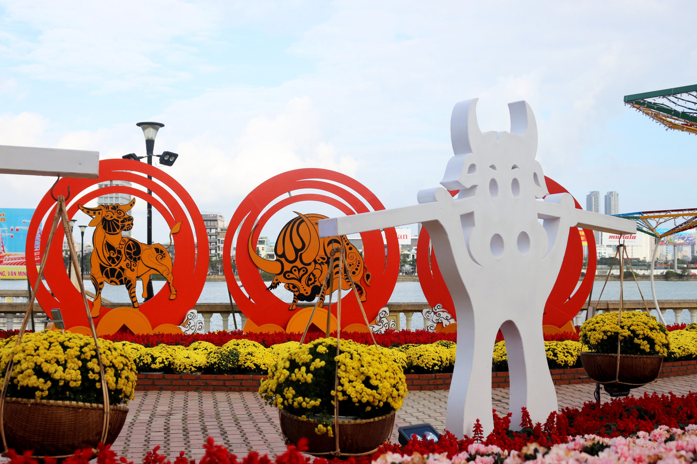 Để tạo thuận lợi cho người dân lưu lại những khoảnh khắc du xuân đẹp nhất, các biểu tượng linh vật trâu vàng được bố trí rải đều dọc khu vực đường hoa Tết, từ khu vực cầu Rồng đến tận Trung tâm hành chính TP Đà Nẵng.