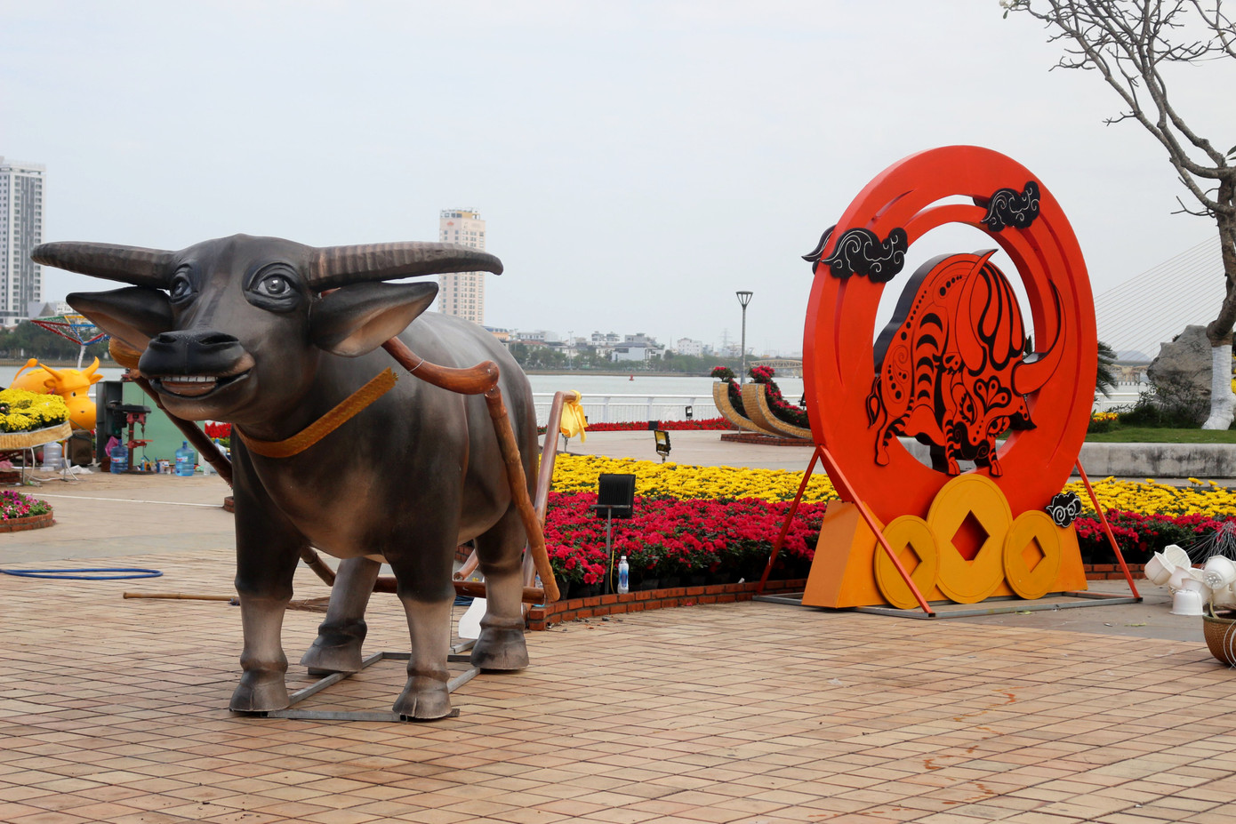 Nhiều biểu tượng trâu cách điệu độc đáo, trâu cõng hoa xuân... cũng được trưng bày tại đường hoa Tết Đà Nẵng năm nay.