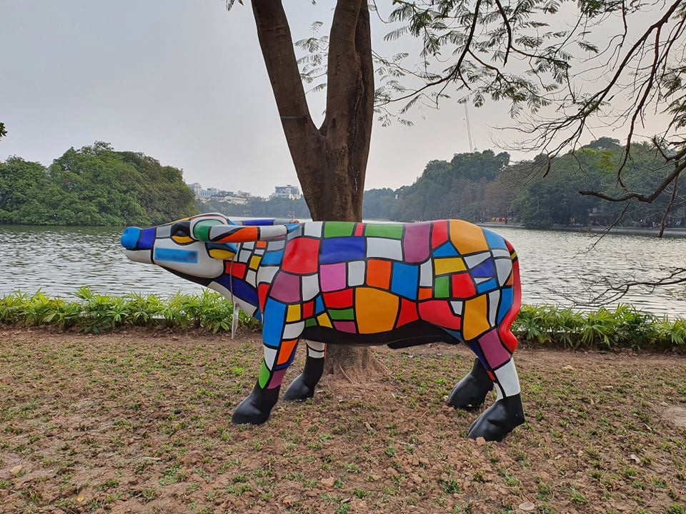 Đàn trâu nghệ thuật vừa được trưng bày trên bờ hồ Hoàn Kiếm. “Trâu diễu hành Hà Nội 2021” là dự án nghệ thuật công cộng phi lợi nhuận, ý tưởng của họa sĩ Bùi Chí Công được đưa ra trưng bày thị giác tại các địa điểm văn hóa trung tâm Hà Nội.