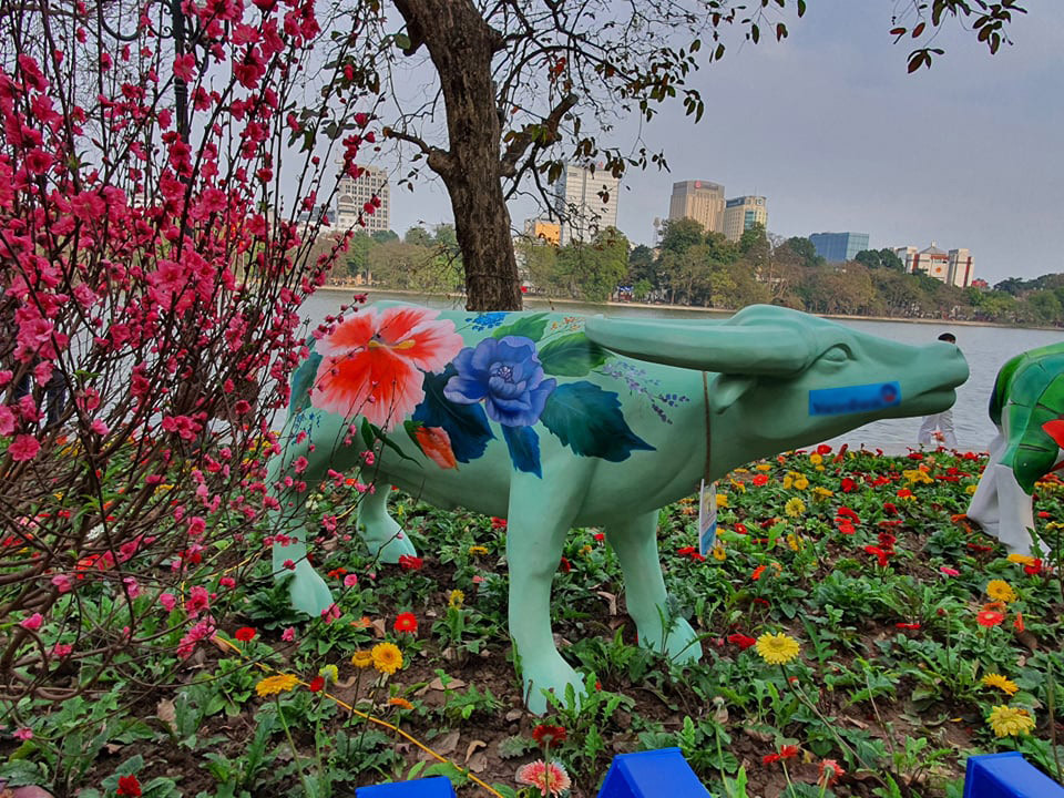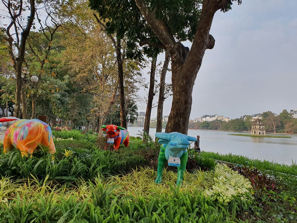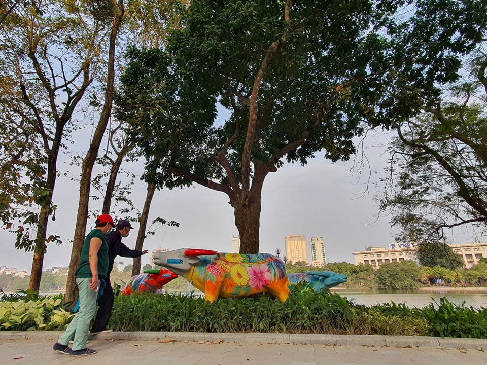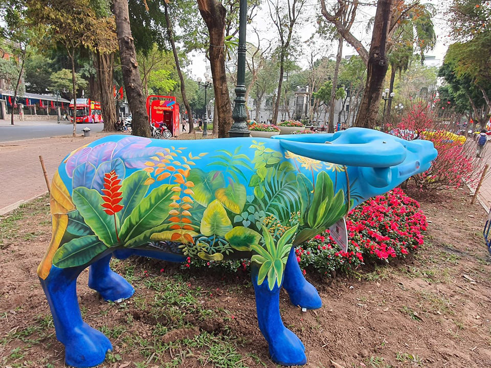 Đại diện UBND quận Hoàn Kiếm cho biết, hiện quanh hồ điểm có trâu diễn hành: Vườn hoa đầu Thủy Tạ, vườn hoa đối diện tường rào báo Nhân Dân, vườn hoa đối diện Công an quận Hoàn Kiếm, vườn hoa gần đồng hồ hoa Thụy Sĩ; Các vườn hoa Hàng Vôi, Tây Sơn, Cổ Tân, Mê Linh, vườn hoa con cóc cũng đã có trâu diễn hình trưng bày.