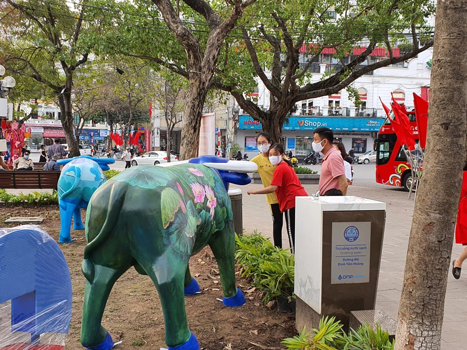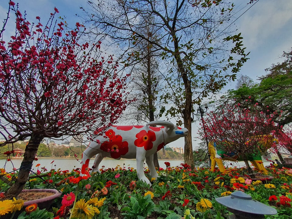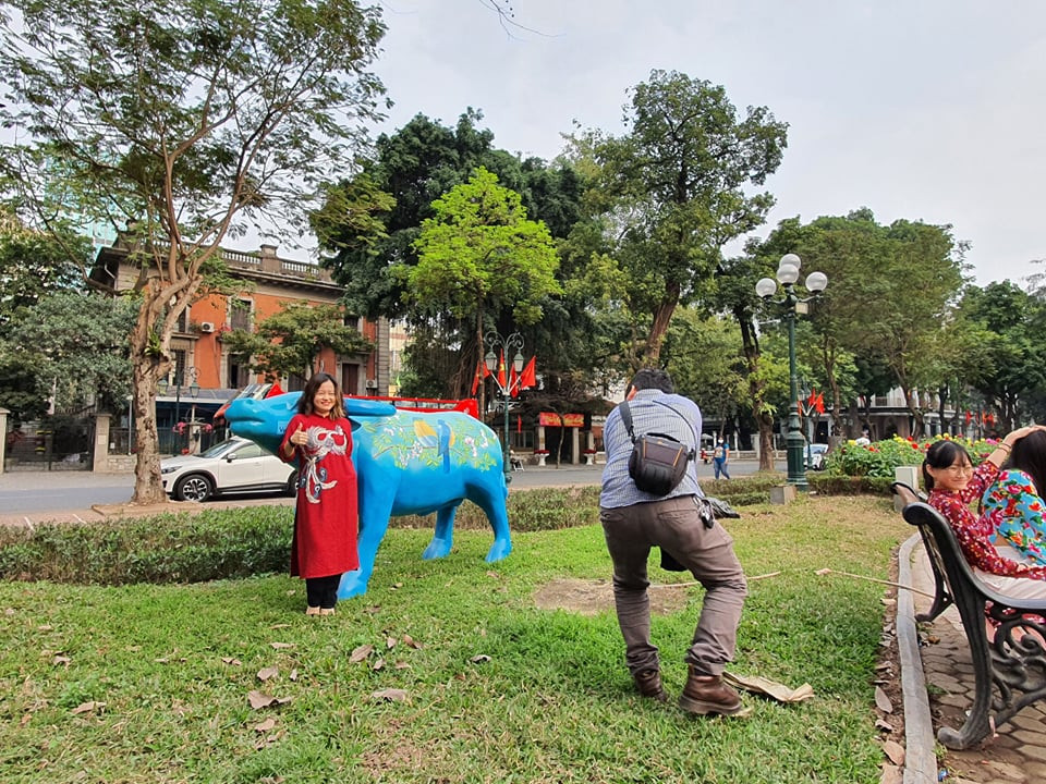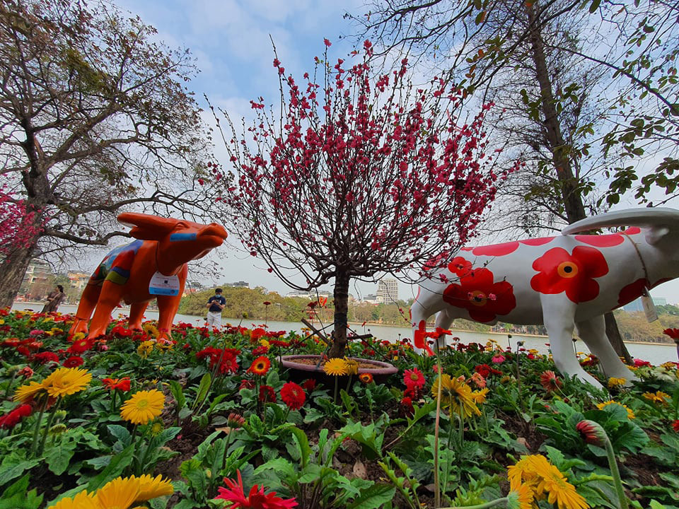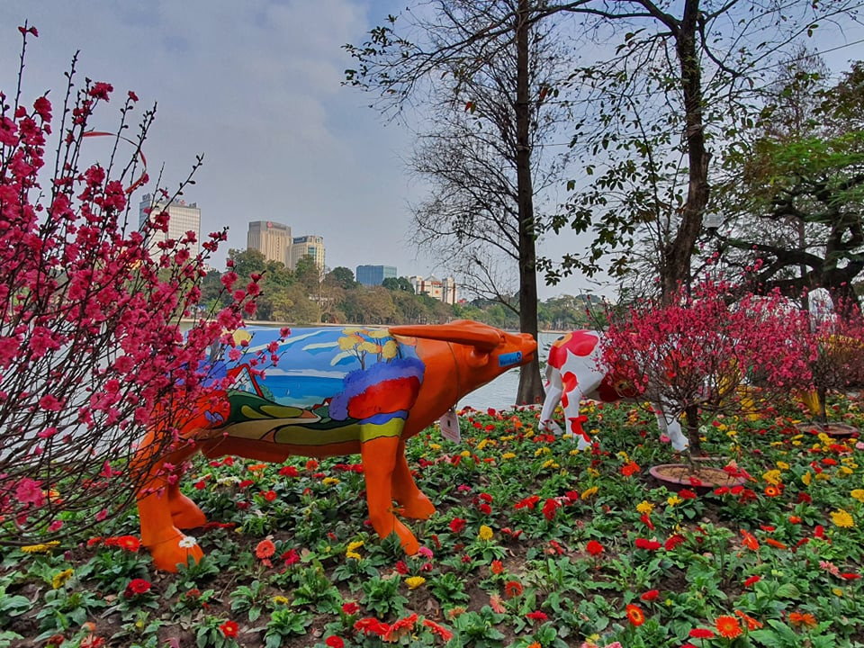 Đại diện UBND quận Hoàn Kiếm cho biết, hiện quanh hồ điểm có trâu diễn hành: Vườn hoa đầu Thủy Tạ, vườn hoa đối diện tường rào báo Nhân Dân, vườn hoa đối diện Công an quận Hoàn Kiếm, vườn hoa gần đồng hồ hoa Thụy Sĩ; Các vườn hoa Hàng Vôi, Tây Sơn, Cổ Tân, Mê Linh, vườn hoa con cóc cũng đã có trâu diễn hình trưng bày.