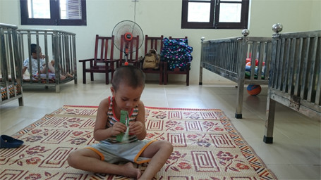 Em bé này quậy phá liên tục, khiến cán bộ chăm sóc vất vả