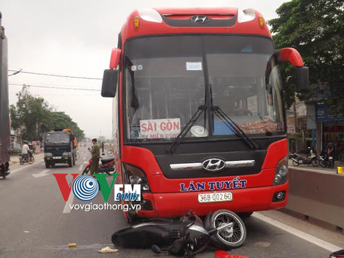 Khi tới trước cổng bệnh viện, anh Truyền rẽ sang đường thì bất ngờ bị chiếc ô tô khách giường nằm mang BKS 36B-00260 chạy hướng Thanh Hóa - Vinh đâm vào, kéo lê người và xe máy khoảng chừng 10m trên đường.