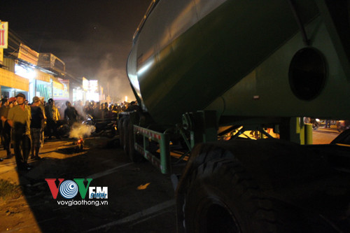 Nhận được tin báo, lực lượng công an huyện Bình Chánh có mặt xử lý vụ việc. Chiếc xe bồn gây tai nạn được đưa về công an huyện Bình Chánh phục vụ công tác điều tra.