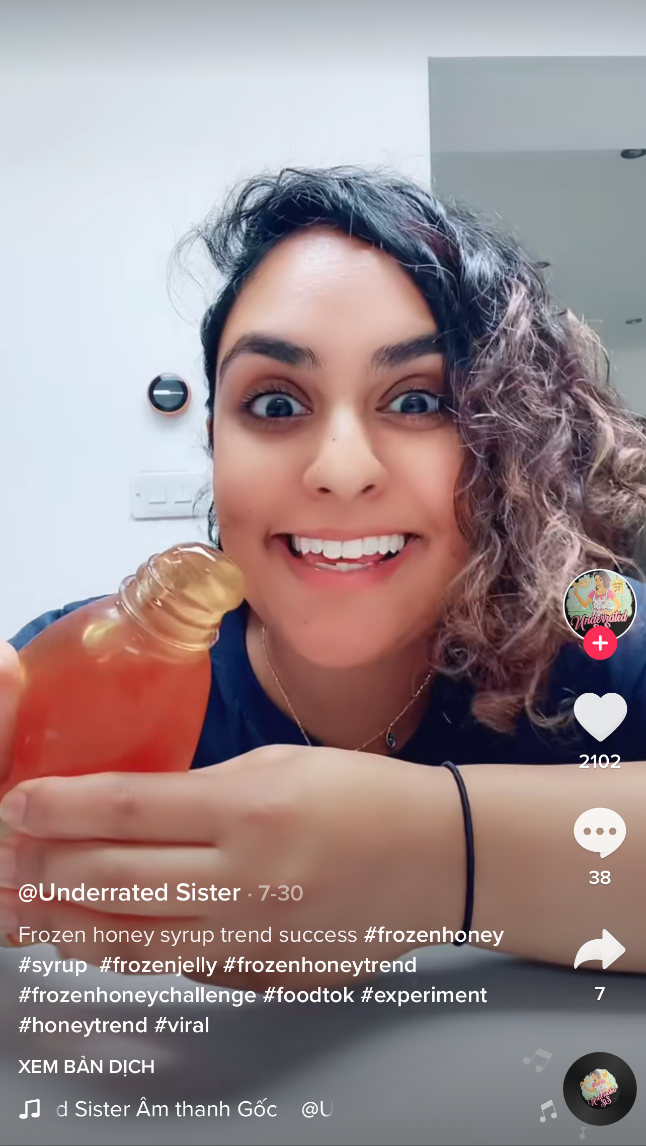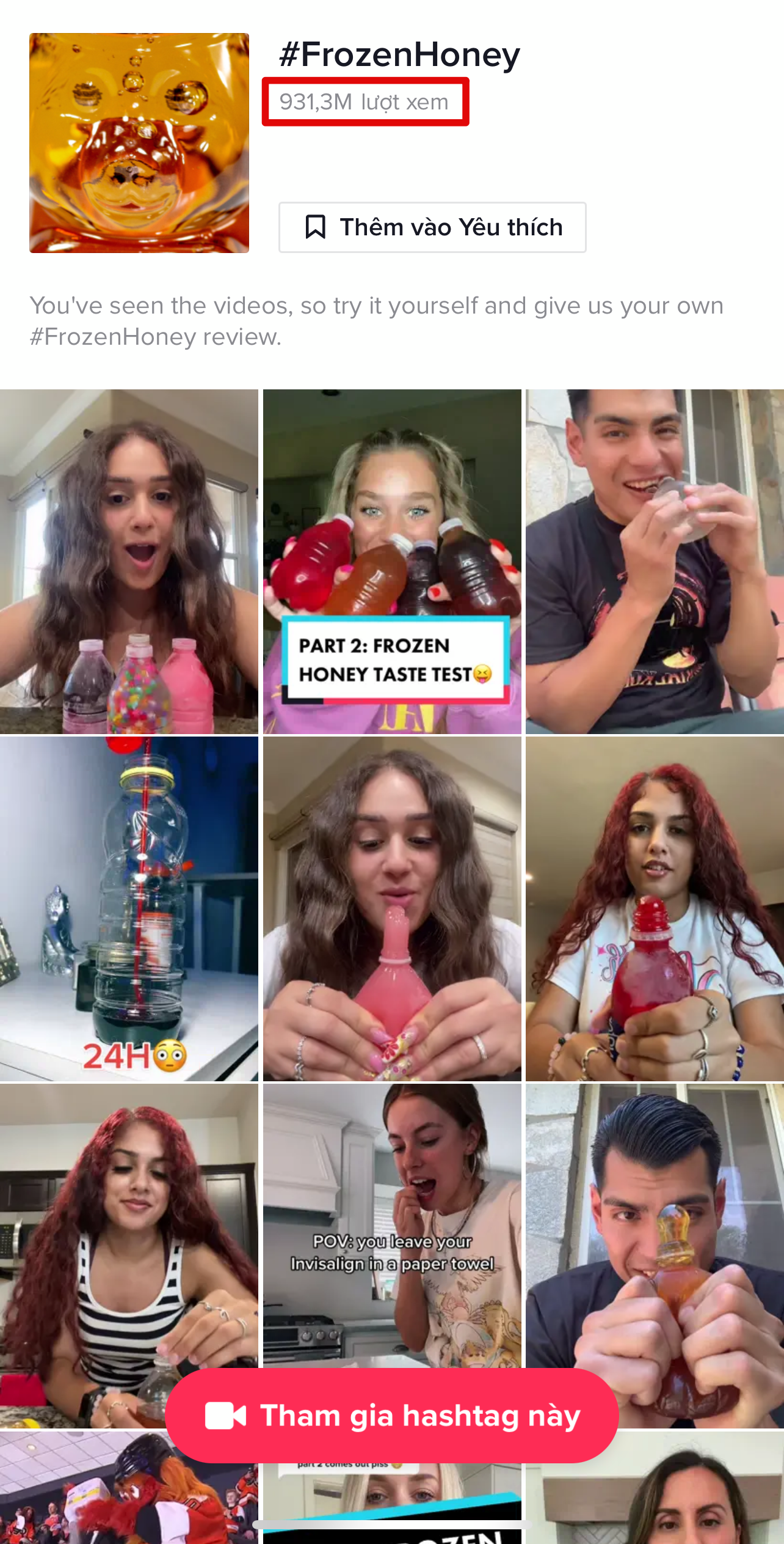 Thời gian gần đây, một trào lưu mới thu hút người dùng TikTok có tên #FrozenHoneyChallenge hay #FrozenHoney (tạm dịch: Thử thách mật ong đông lạnh). Cho đến nay, nội dung này đã thu hút khoảng 931 triệu lượt xem.