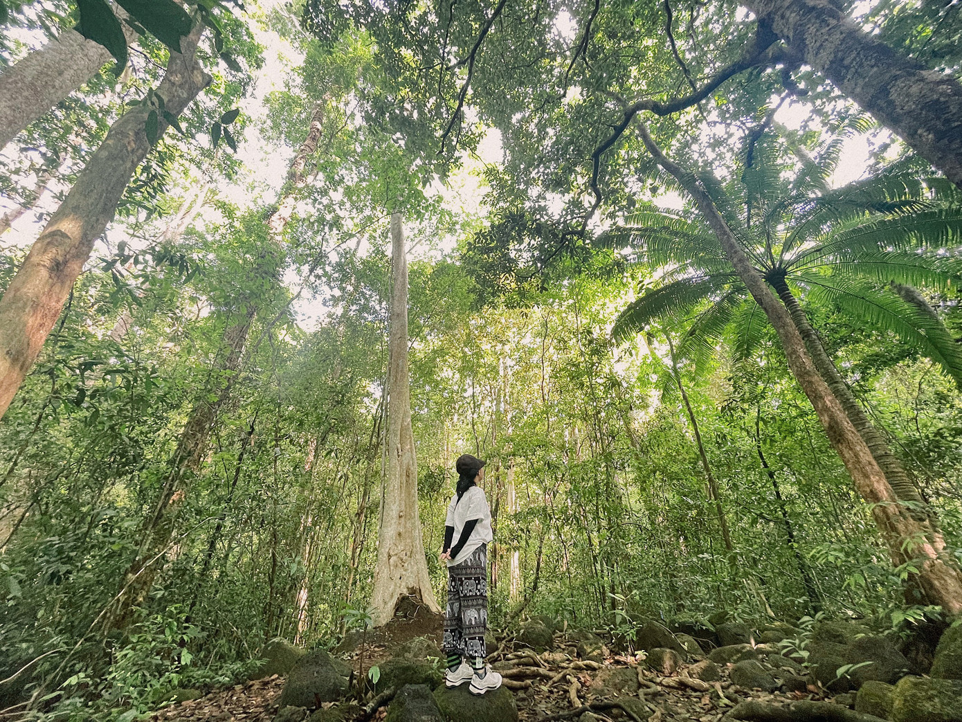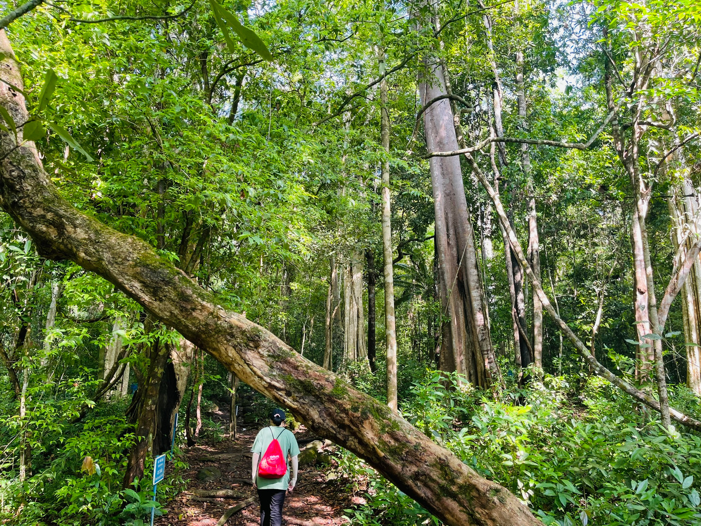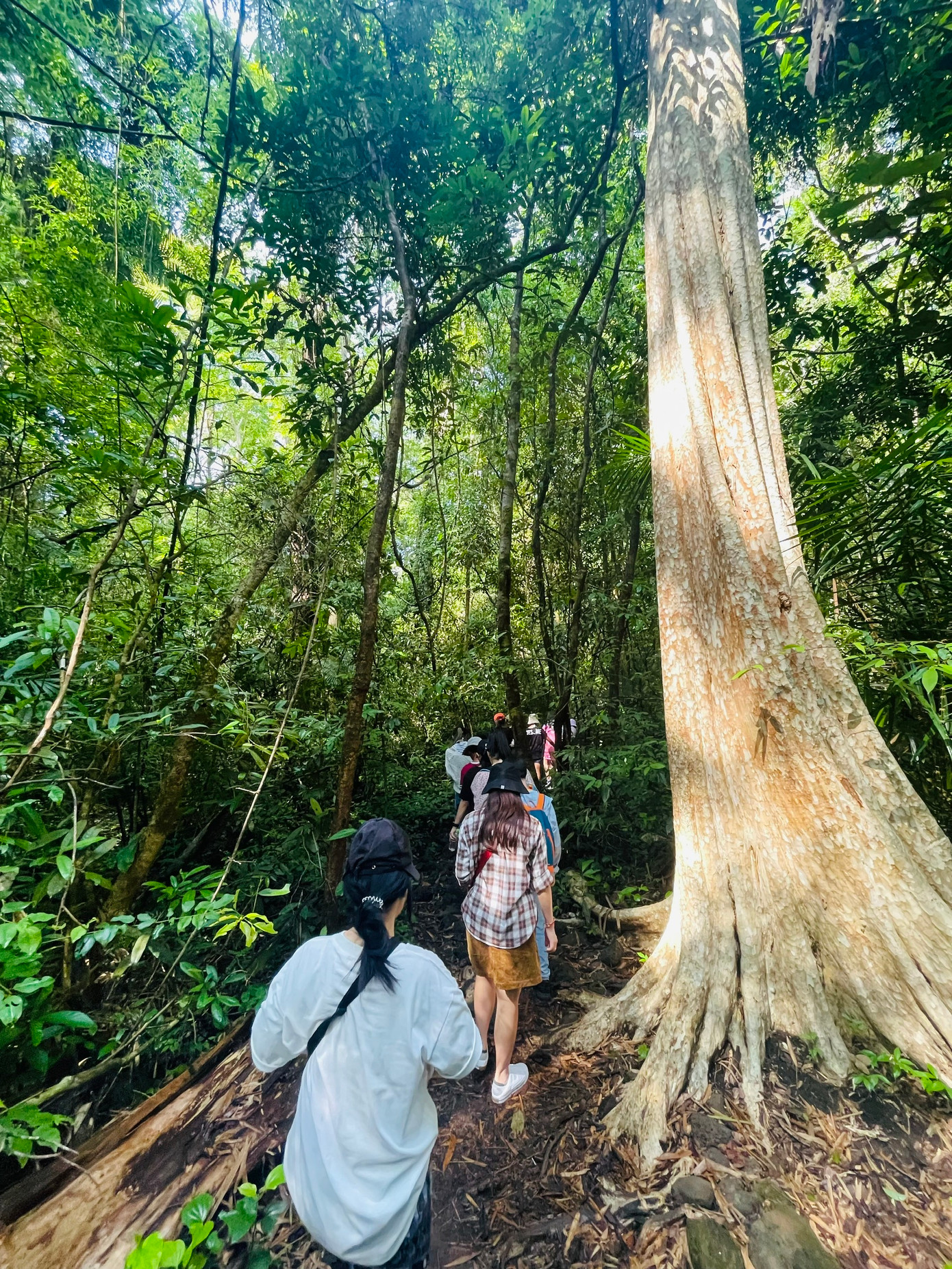 Khi cuốc bộ dọc khu rừng nguyên sinh, ngoài vô số góc chụp đẹp, mình và nhóm bạn phải cúi mình đi xuyên qua những nhánh cây cổ thụ, dây leo chằng chịt, những lá cây rụng là nguồn thức ăn của các loài côn trùng. Từ đó, mình cảm thấy nhỏ bé trước sự hùng vĩ của thiên nhiên”, Quỳnh Anh bày tỏ.