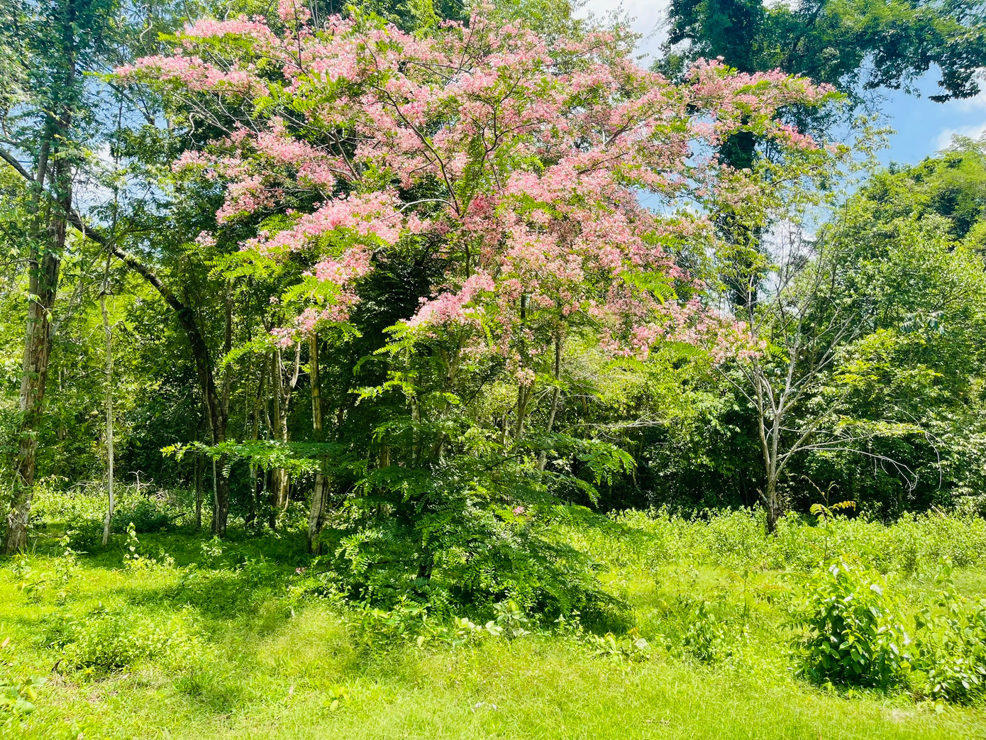 Bên cạnh đó, tháng Năm cũng là thời gian đẹp nhất để thưởng đào Cát Tiên. Chỉ sau 2 - 3 cơn mưa đầu mùa, hoa muồng đào (tên khoa học là Cassia javanica, thuộc họ đậu, Fabaceae) đang vào đợt nở rộ, rực rỡ sắc hồng.