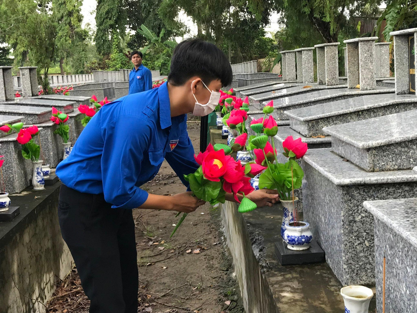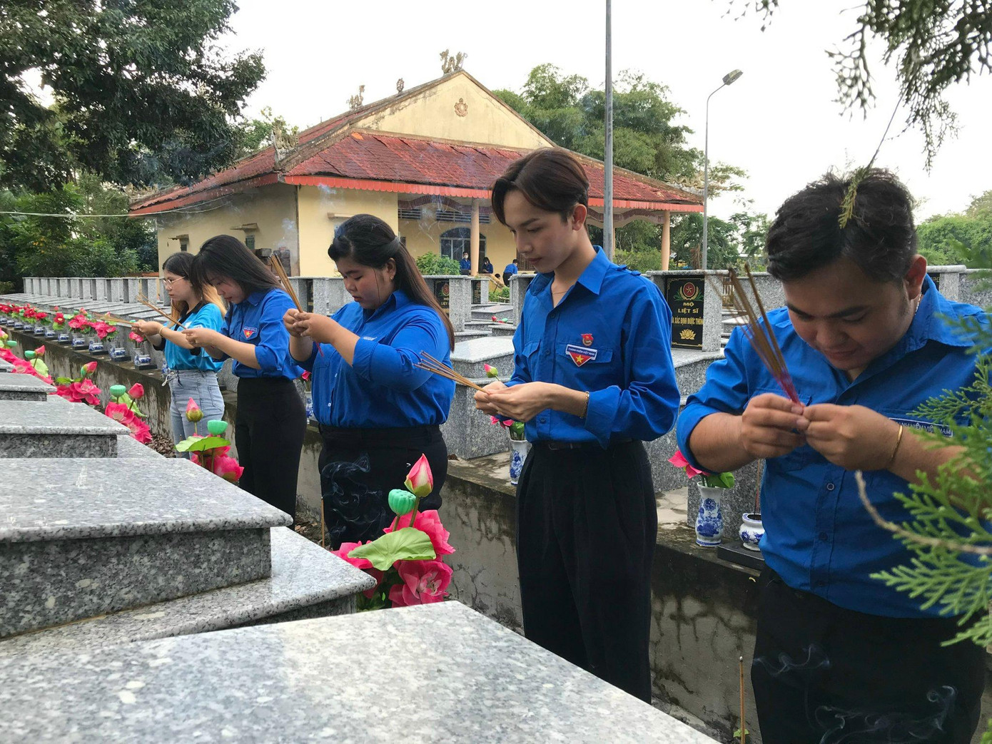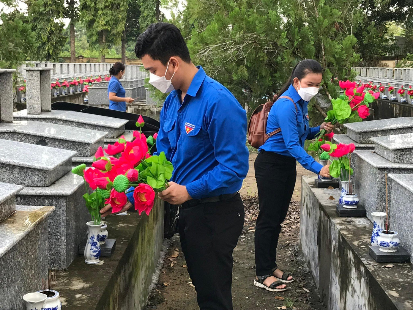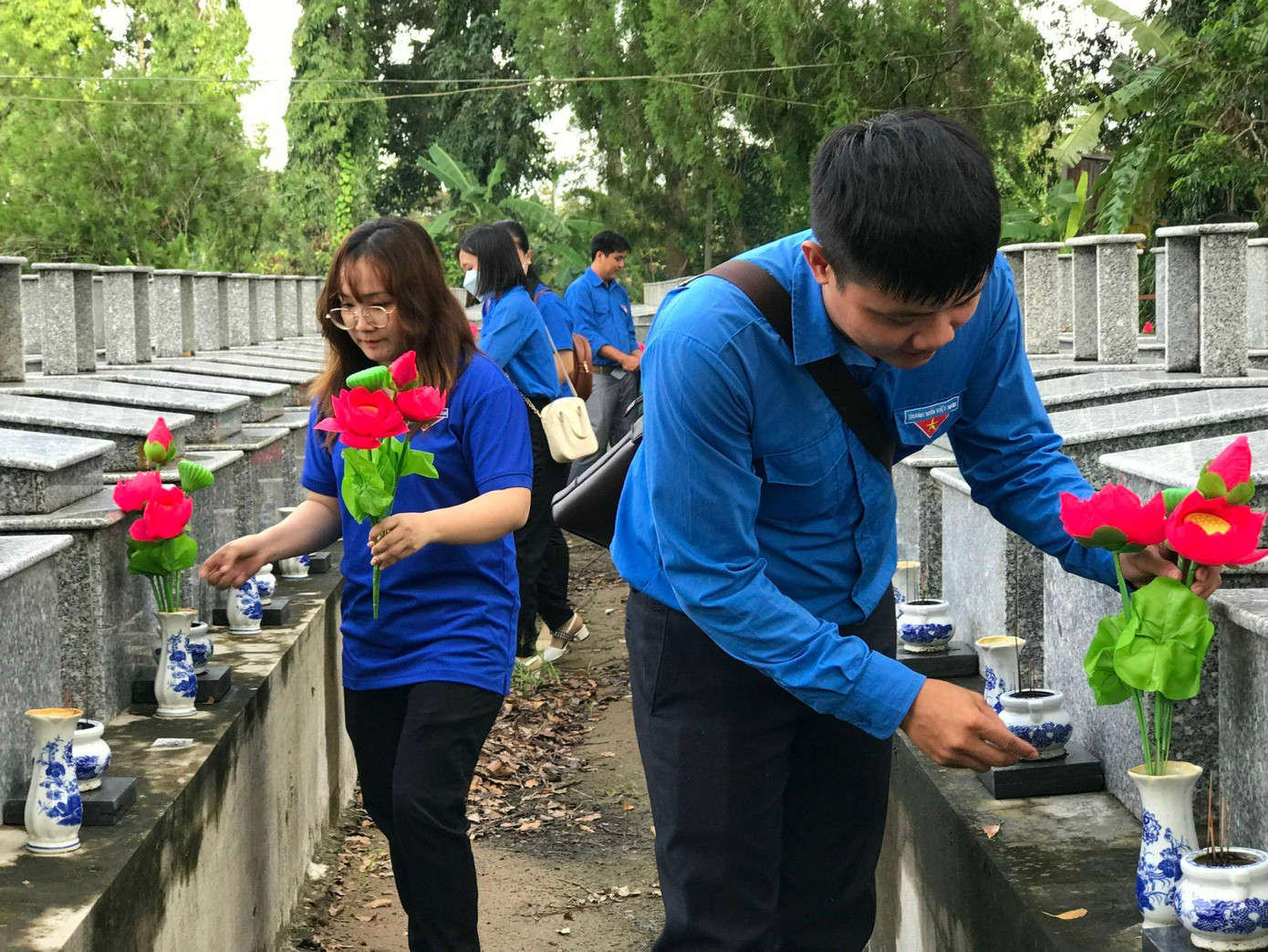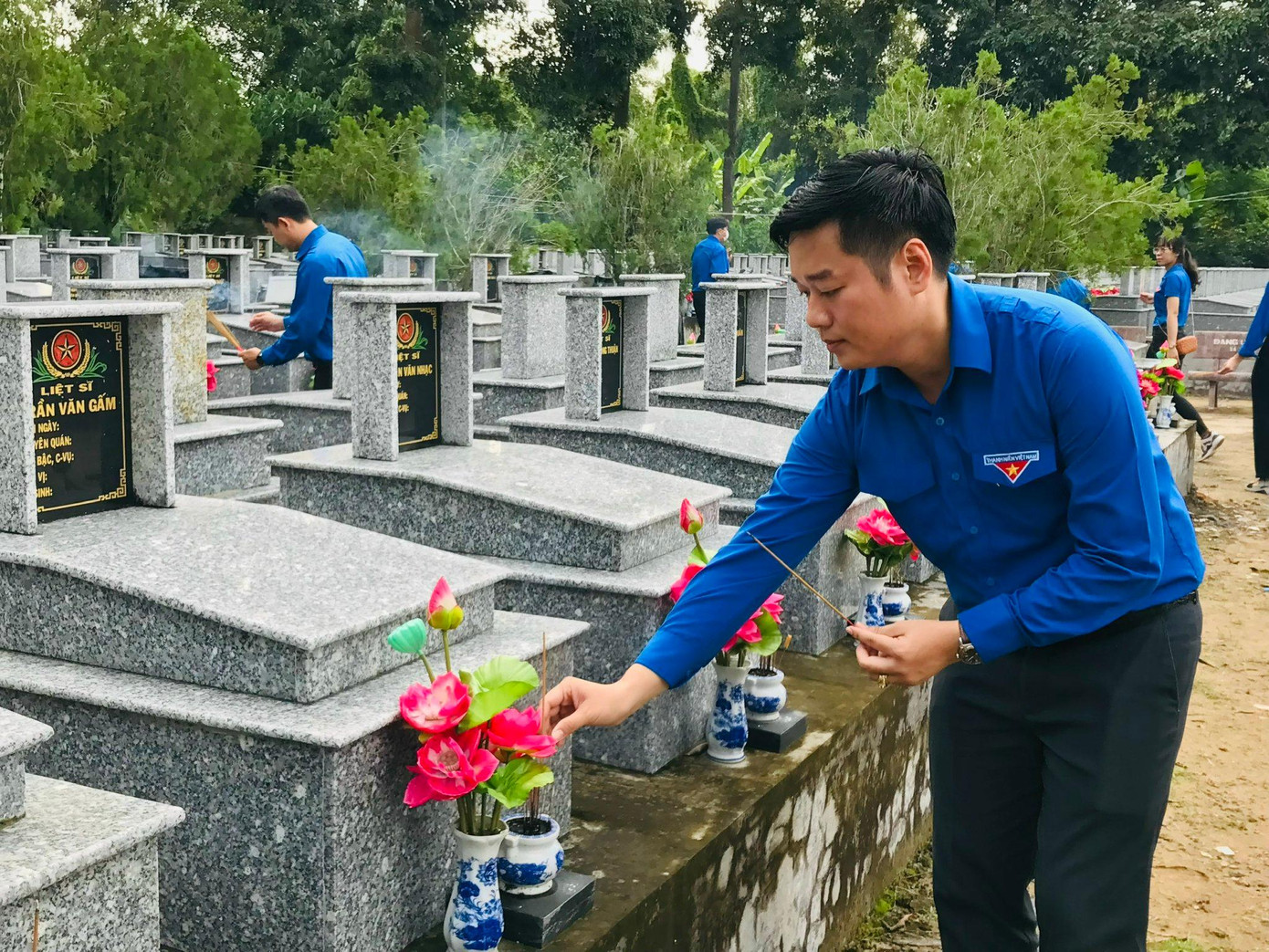 Đông đảo đoàn viên, thanh niên đến dâng hoa, thắp hương tại Nghĩa trang Liệt sĩ Tầm Vu, cùng nhau ôn lại truyền thống hào hùng của dân tộc.