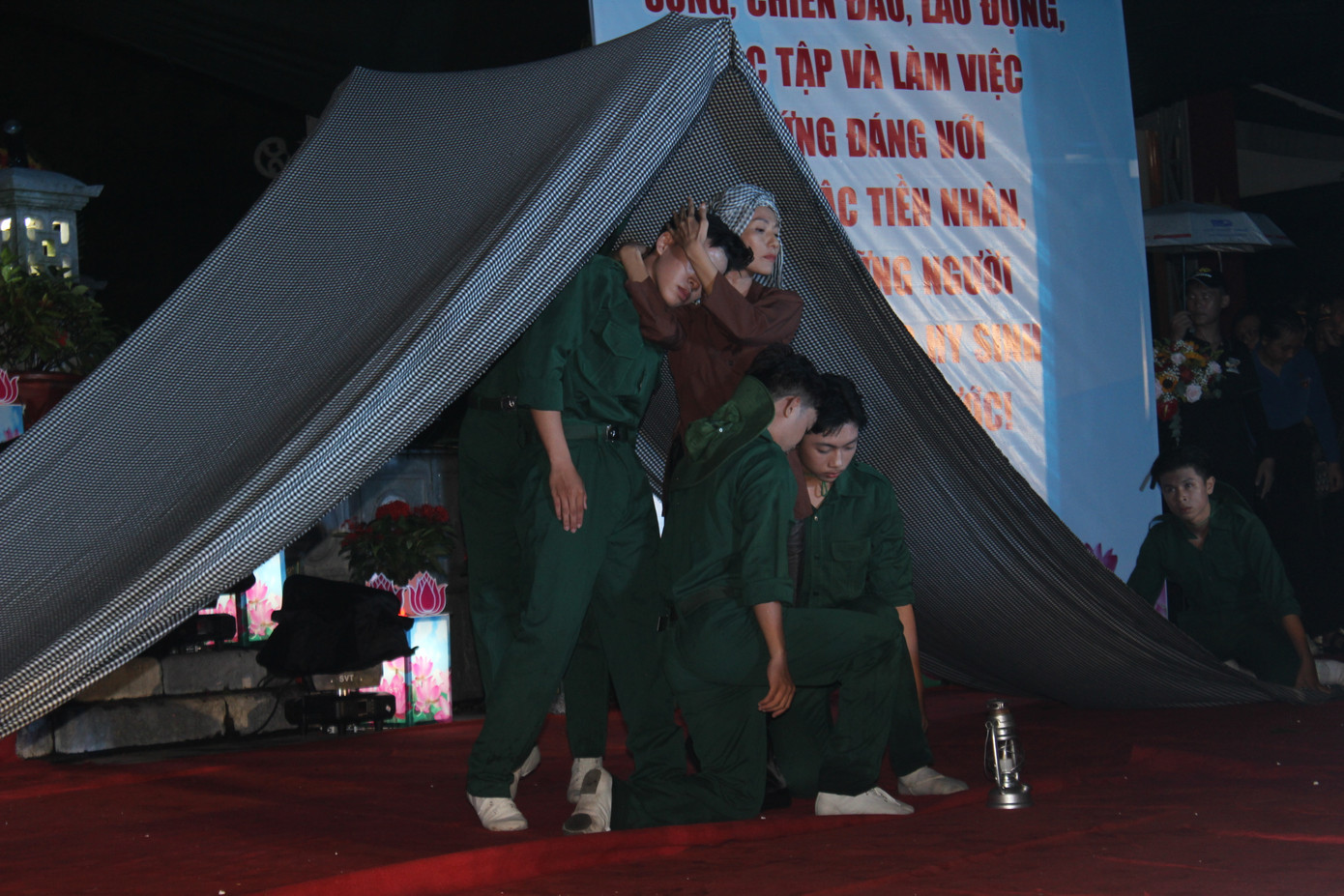 “Chiến tranh khốc liệt đã lùi vào quá khứ hơn 40 năm qua, đất nước ta đã hoàn toàn thống nhất, nhân dân được hưởng nền độc lập, tự do, ấm no, hạnh phúc. Để có được ngày hội toàn thắng, đất nước ta, dân tộc ta đã mất đi hàng triệu người con ưu tú nơi chiến trường, hàng triệu người mang theo trên mình thương tật và bao nhiêu gia đình chịu mất mát, li tán. Hôm nay, chúng ta đứng đây, trong hòa bình, độc lập, cùng thắp nén tâm nhang tưởng nhớ tới các thế hệ cha anh đi trước, những người anh hùng đã hy sinh trong công cuộc đấu tranh giải phóng dân tộc và xây dựng, bảo vệ Tổ quốc” – Trung tá Đồng Đức Vũ bày tỏ.