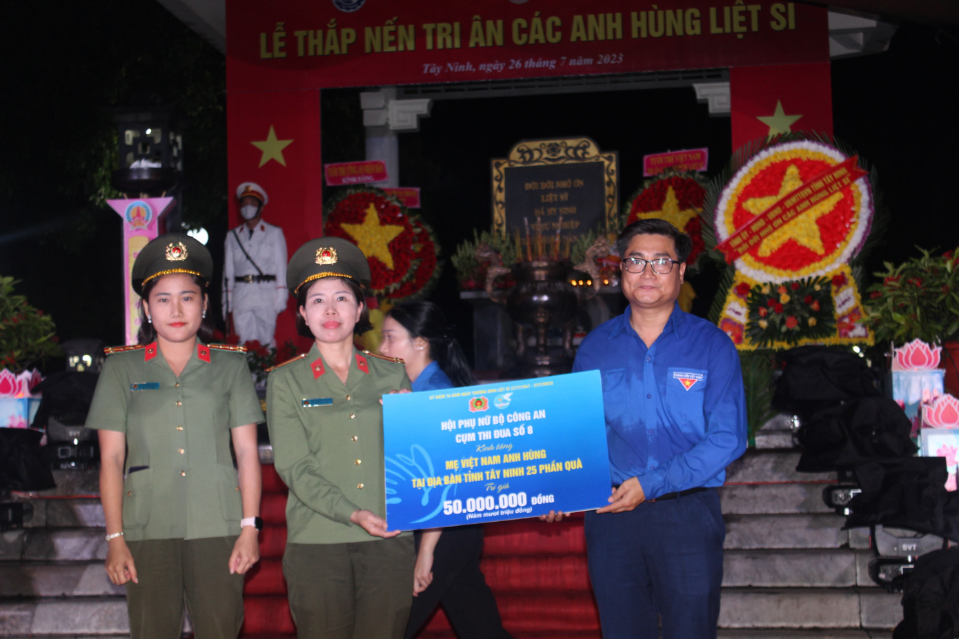 Cùng ngày, Tỉnh Đoàn Tây Ninh phối hợp với Ban Thanh niên công an nhân dân đã thăm Mẹ Việt Nam anh hùng Lê Thị Hai (sinh năm 1933) tại KP1, P.4, TP. Tây Ninh và Thăm mẹ Việt Nam Anh Hùng Võ Thị Thạnh (sinh năm 1927) ngụ tại KP. Ninh An, P. Ninh Sơn, TP. Tây Ninh. Đoàn cũng khởi công 1 Nhà đồng đội (trị giá 150 triệu đồng) tặng gia đình Thượng sỹ Phạm Huy Khang, chiến sĩ công an có hoàn cảnh khó khăn.