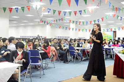 Bà Ella Bjornsdottir, Giám đốc điều hành Tập đoàn Franklin Covey vùng Trung Đông và Châu Á trong buổi giới thiệu, tập huấn chương trình The Leader in Me cho giáo viên và phụ huynh .
