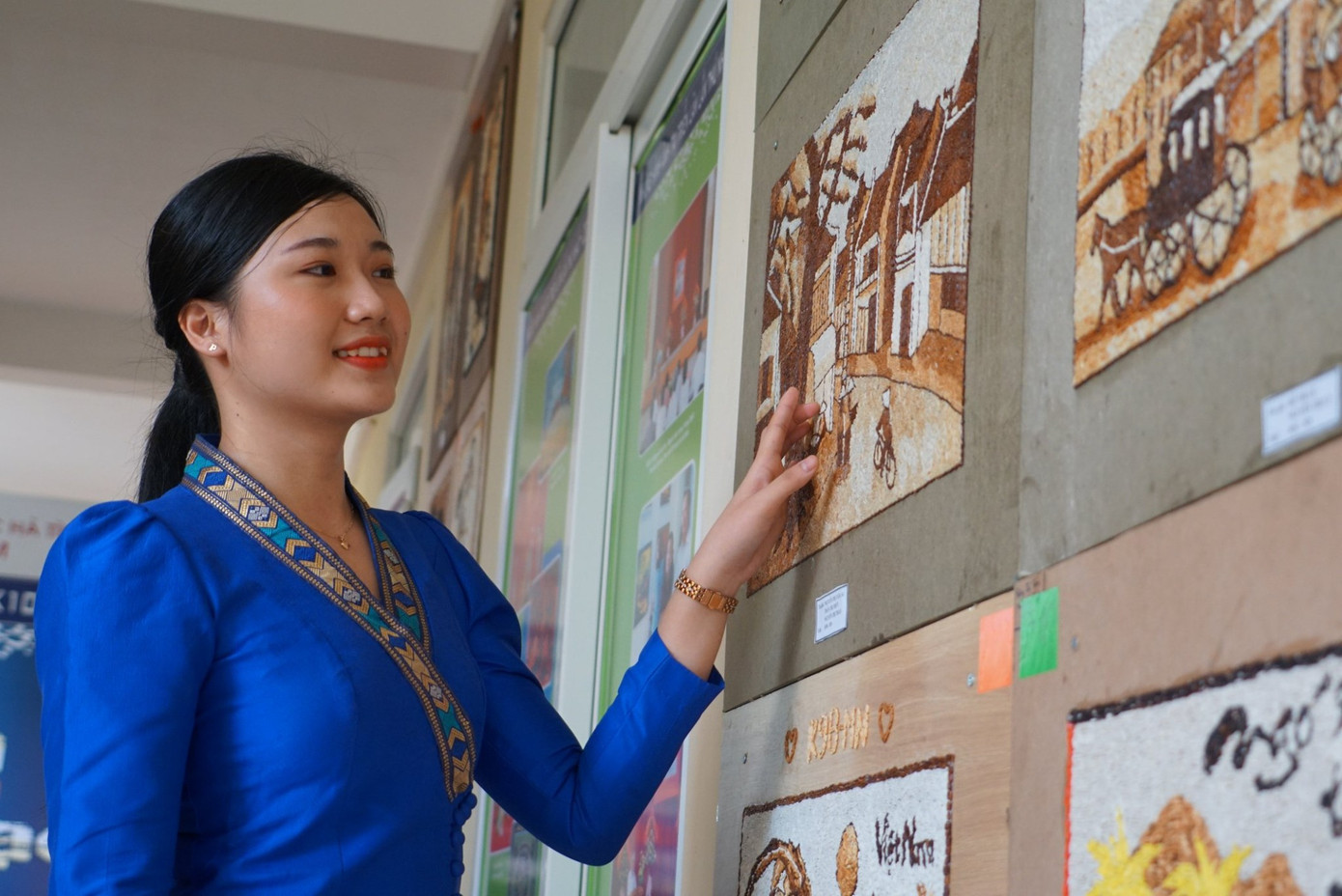 Chiều 14/6, khoa Sư phạm Trường Đại học Hà Tĩnh phối hợp với Đoàn thanh niên của trường tổ chức chương trình triển lãm tranh gạo với tên gọi “Hình của gạo".