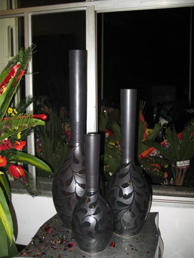 Về màu sắc rất đa dạng, dưới bàn tay của anh từ những dáng vóc của bình lọ bình thường chúng được "khoác" một chiếc áo khác, cảm xúc chủ đạo là từ sen và súng.