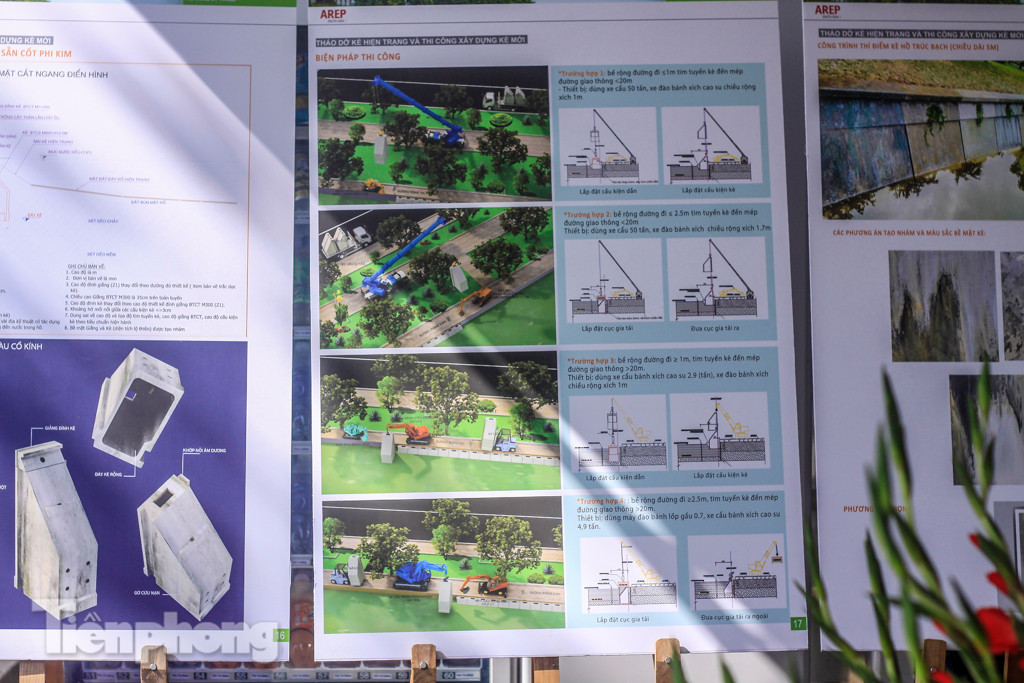 Điểm mới trong lần trưng bày lần này là phương án kè bờ hồ bằng các khối bê tông hộp rỗng, đúc sẵn bằng cốt sợi. Mỗi khối hộp cao 2,5 m, đáy rộng 1,6m, mái vát.