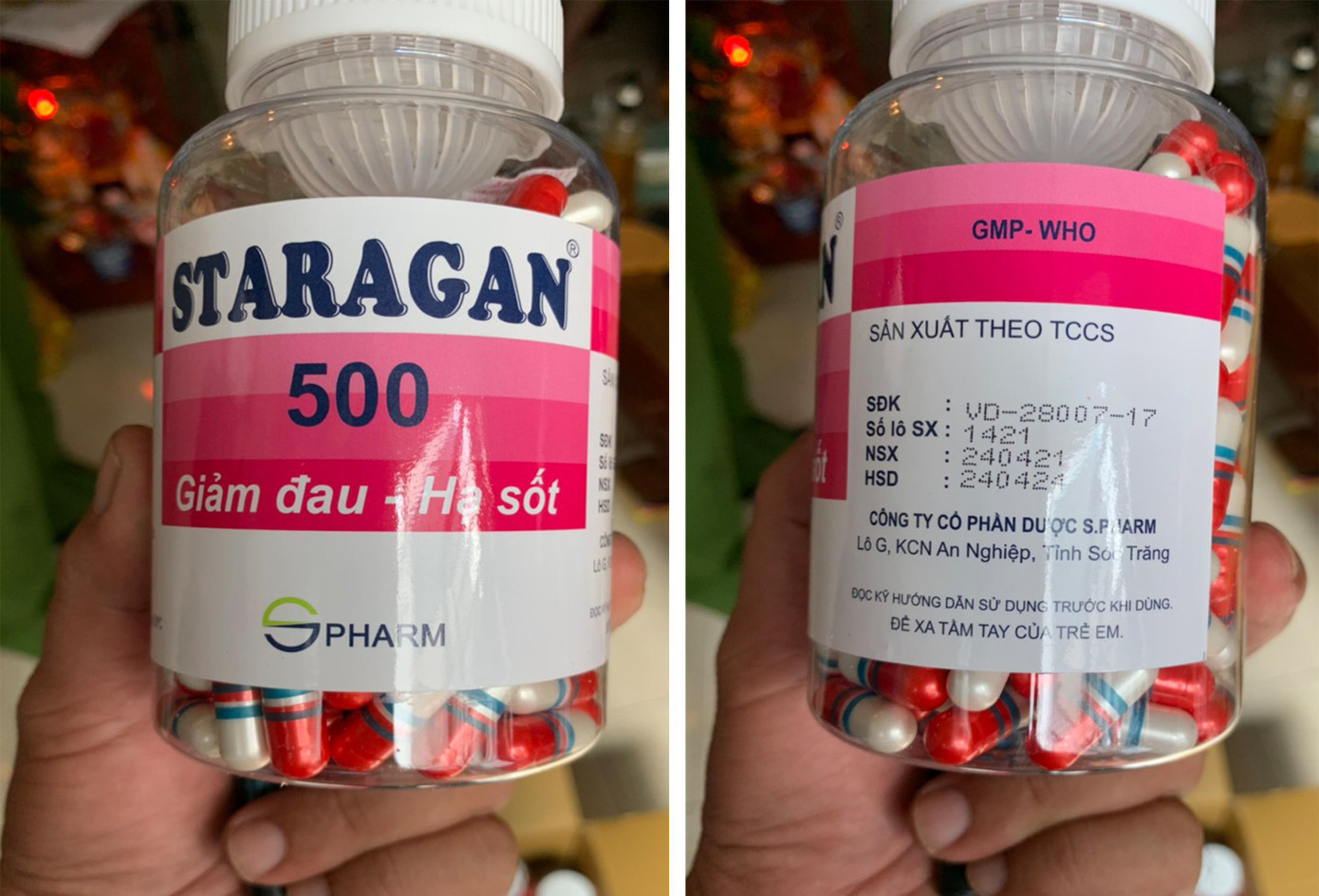 Trong đó có: 3.116 hộp thuốc phòng, chữa trị COVID-19 giả các nhẫn hiệu Neo –Cordion, Angmentin, 2,5kg viên thuốc màu trắng không nhãn hiệu dùng để sản xuất thuốc Fugacar giả; 100 vi Neo-codien; 100 lọ thuốc Staragan 500 loại 200 viên/ lọ; 50 lọ thuốc staragan đã bốc nhãn hiệu….