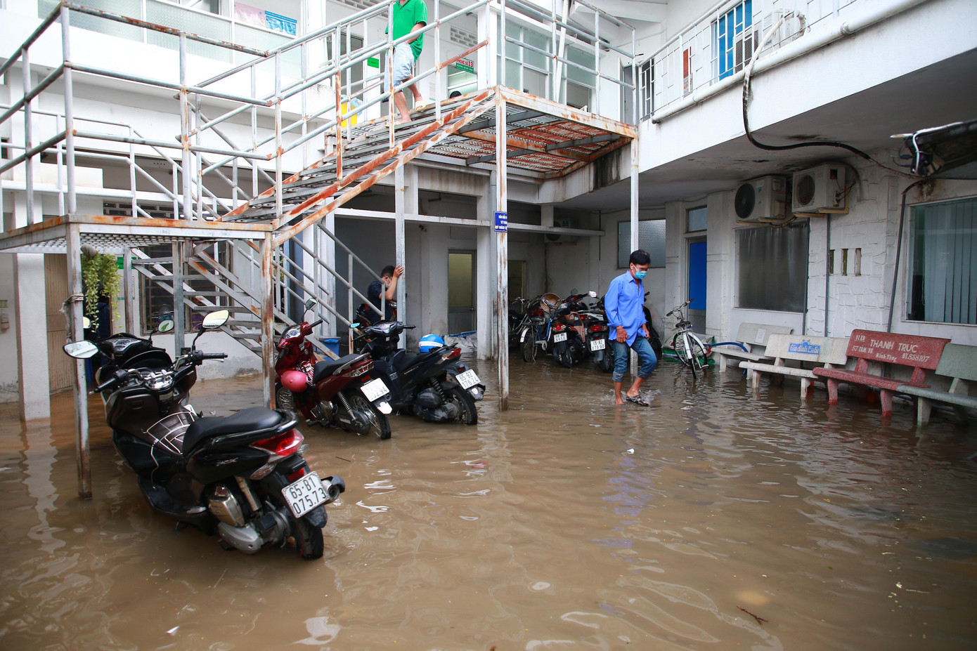Một người nuôi bệnh tại đây cho biết, nước dâng cao buổi sáng – chiều làm cả phòng ngập nặng.