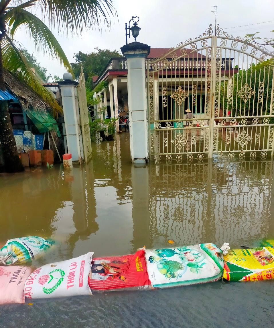 “Nước lên cao đi lại khó khăn lắm chú ơi. Sáng nào tôi cũng đợi nước rút bớt mới dám đi bán. Ráng vài ngày nữa là hết để người dân tụi tôi đi bán được dễ dàng. Tôi sống ở đây từ nhỏ đến lớn, nhưng chưa có năm nào như năm nay ngập kinh khủng như vậy", bà Tuyến nói.