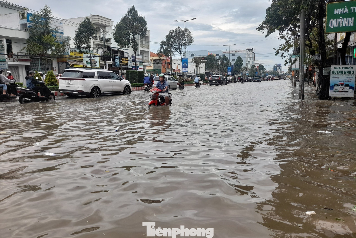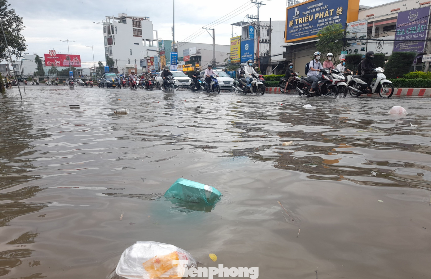| Đường Mậu Thân (quận Ninh Kiều), đoạn từ cầu Rạch Ngỗng đến ngã tư Nguyễn Văn Cừ là một trong những "rốn ngập" của Cần Thơ khi triều cường dâng cao. Ảnh chụp lúc hơn 7h sáng 2/10. |