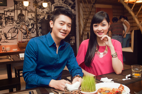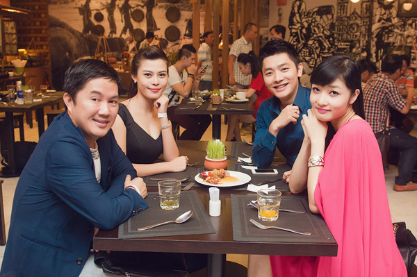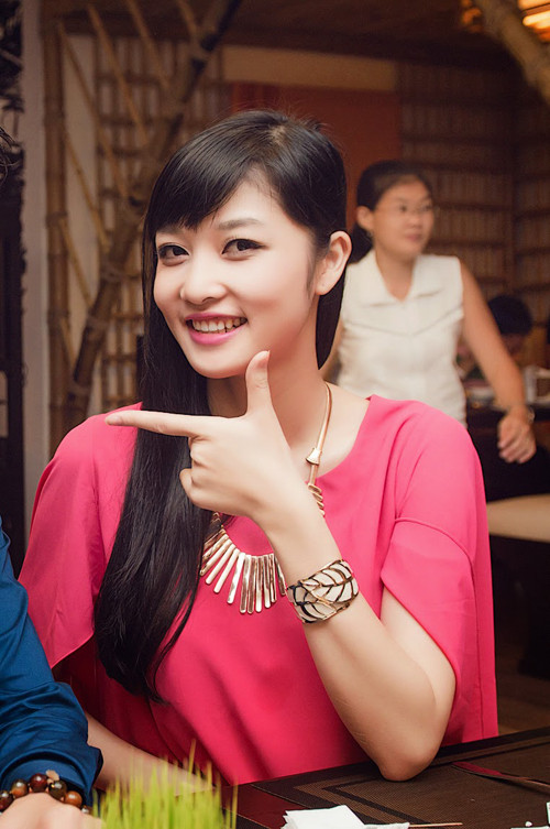 Tối qua (24/6), Triệu Thị Hà rạng rỡ trong bộ đầm hồng rực cùng một vài người bạn tới dự sinh nhật của "Én vàng" Tuấn Anh tại một nhà hàng ở TP HCM. Người đẹp Cao Bằng khá thân thiết với MC Tuấn Anh từ sau cuộc thi Hoa hậu các dân tộc 2011.