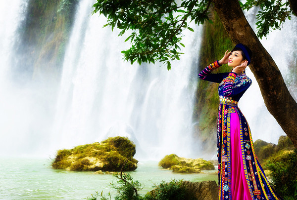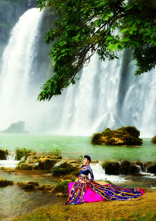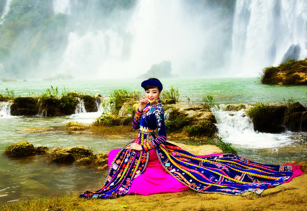 Triệu Thị Hà rực rỡ bên thác Bản Giốc
