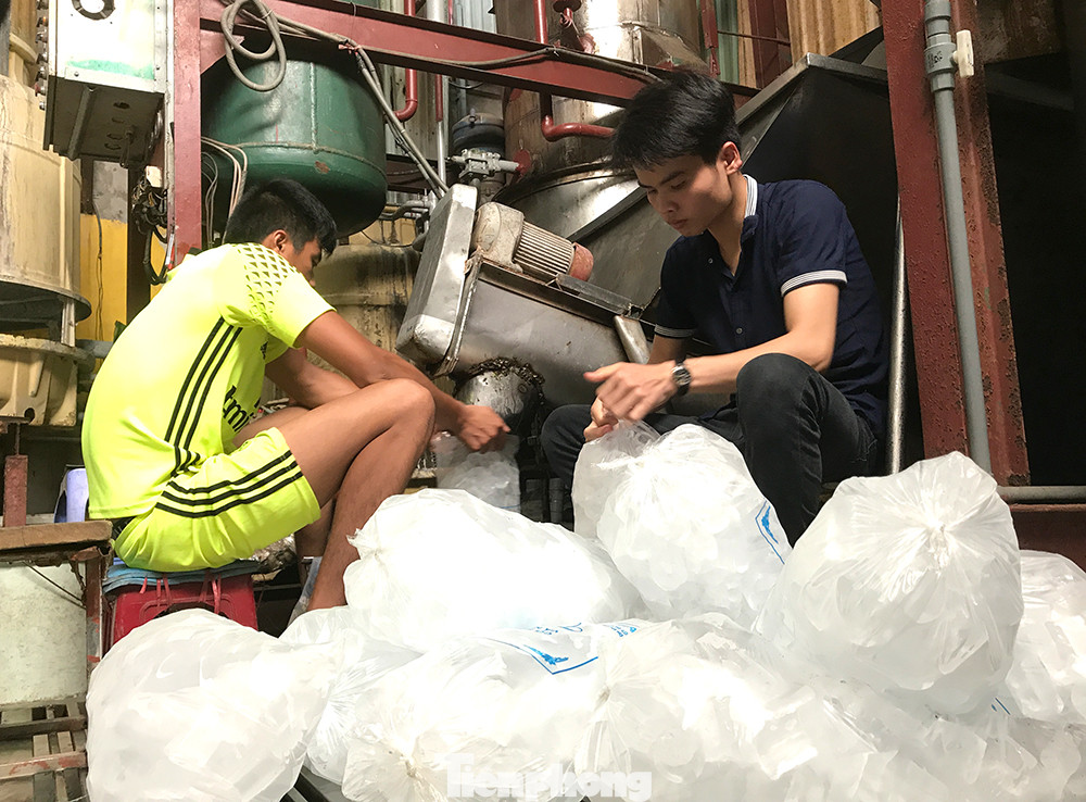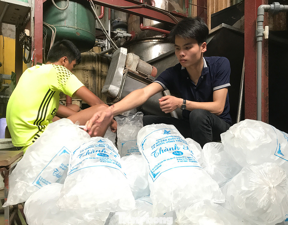 Một công nhân chuyên làm đá sạch ở quận Hoàn Kiếm (Hà Nội) cho biết, quy trình để tạo ra được một mẻ sản phẩm mất ít nhất là 2 tiếng đồng hồ. Nên dù có tăng ca, đẩy nhanh tiến độ thì cũng không khắc phục được tình trạng đơn hàng tồn đọng do quá tải sản xuất. Bởi vậy, nhiều cơ sở đành ngậm ngùi, bất lực khi thấy tiền chảy trước mắt mà không làm gì được