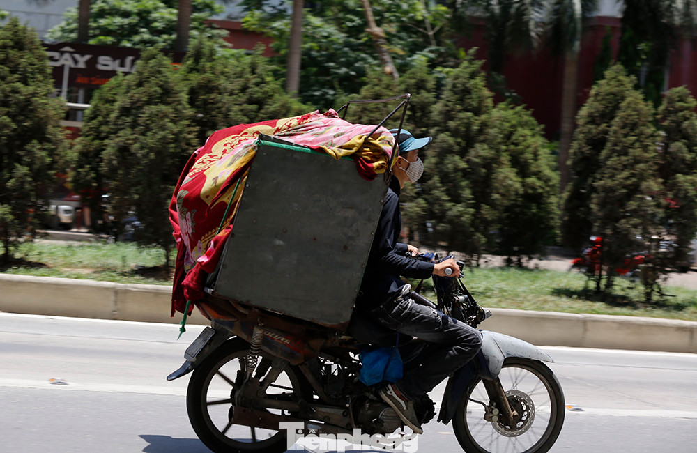 Đá được đưa đi tiêu thụ trên những chiếc xe máy chở theo hàng chục túi đá viên lũ lượt chạy dọc đường Xuân Thủy, quận Cầu Giấy, Hà Nội.