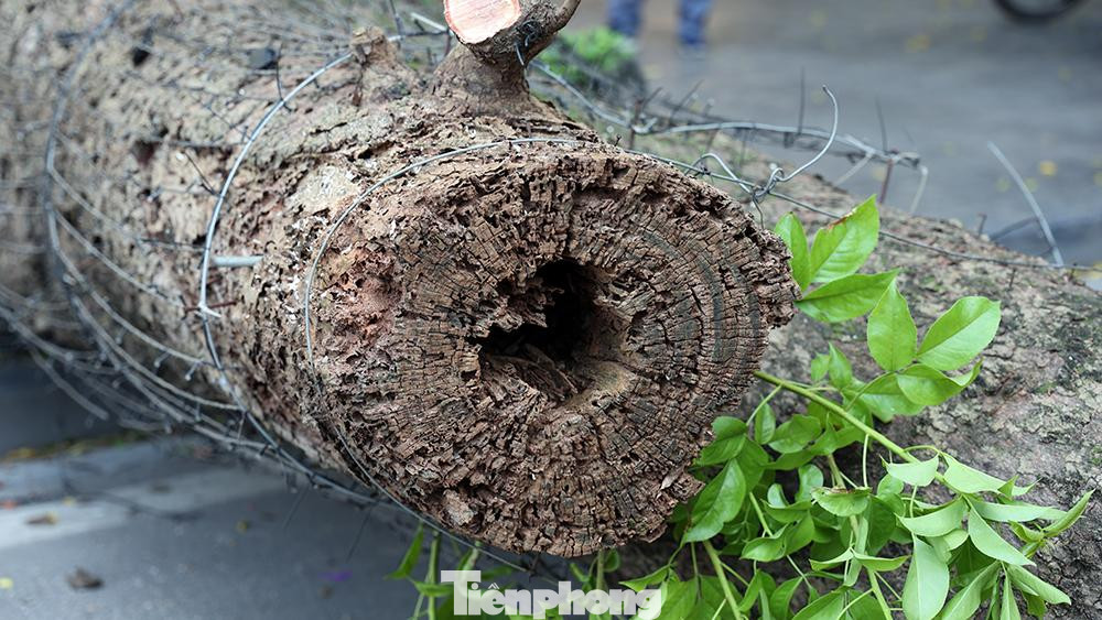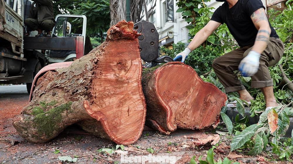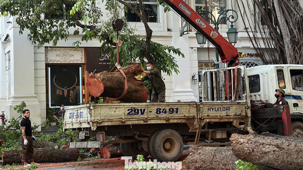 Phần thân cây gỗ lớn được cắt gọn và vânnj chuyển đi khỏi hiện trường ngay tronng buổi chiều ngày hôm nay.