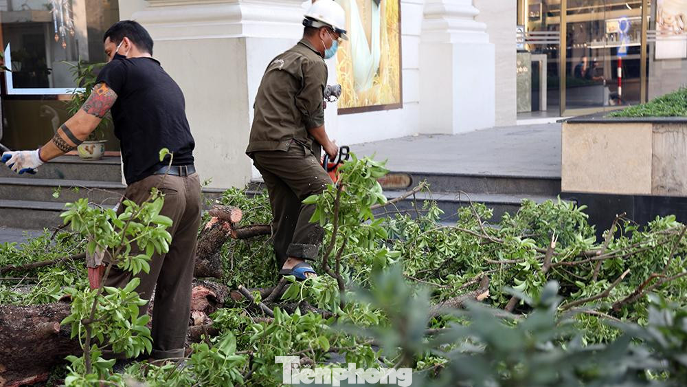 Công nhân cây xanh khẩn trương dọn dẹp trả lại lưu thông cho đường phố ngày cuối tuần.