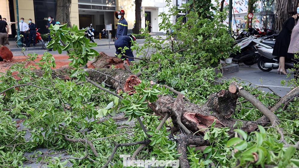 Nguyên nhân được làm rõ là cây si lâu năm bị mục rỗng gốc, rất may hôm nay là ngày thứ Bảy nên khu vực này không có bãi gửi xe và ít người qua lại.