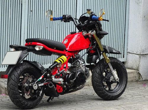 Yêu thích và để tâm nghiên cứu các dòng mini bike, anh Toàn một thợ gò đồng xe gắn máy tại Sài Gòn mất 6 tháng để thiết kế và dựng cho mình chiếc xe độ siêu nhỏ từ động cơ của chiếc Wave Nice 100. Trong ảnh: Chiếc xe sở hữu khối động cơ 100 phân khối của Honda Wave Nice.