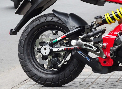 Bộ gắp sau và bộ phận tăng sên học hỏi từ mẫu Kazasaki Z1000 và được chủ nhân tự tay gia công.