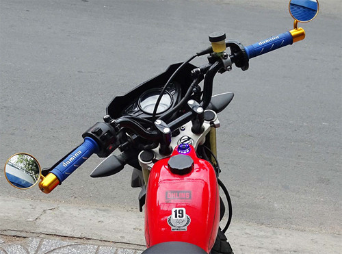 Chiếc mini Ducati khi hoàn thành có khối lượng tương đương 60 kg, chiều cao yên chỉ ngang bằng chiếc Honda Chaly 50, nhưng lắp động cơ Wave. Chủ nhân đã để ý học hỏi những chi tiết hay từ các dòng xe lớn để ứng dụng vào chiếc xe siêu nhỏ như: bộ gắp sau, bộ phận tăng sên, bộ gãy số, bình xăng lớn…Toàn bộ các chi tiết bằng cơ khí này đều được tự gia công. Trong ảnh: Ghi đông, gù và đồng hồ hiển thị cũng được chọn lọc cho phù hợp với tổng thể xe.