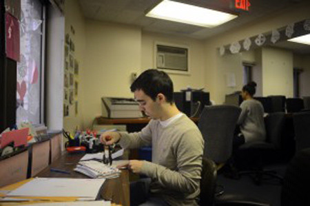 Colin Davies, 19 tuổi - sinh viên năm thứ hai ngành Khoa học chính trị chịu trách nhiệm nhận thư của các ứng viên tại văn phòng tuyển sinh ĐH George Washington