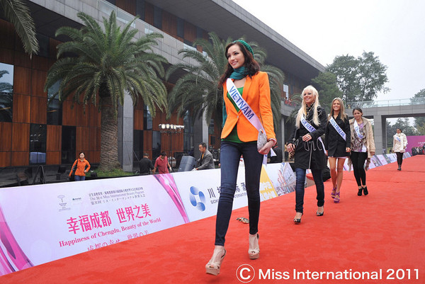 TPO – Đại diện Việt Nam trở thành tâm điểm của ống kính máy ảnh khi xuất hiện cực lộng lẫy và xinh đẹp tại cuộc thi Hoa hậu Quốc tế 2011 đang diễn ra tại Thành Đô, Trung Quốc.