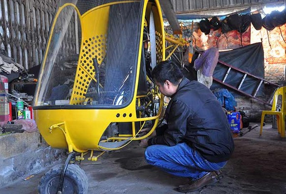 Vào chiều ngày 15/1, tại làng Gia Quất, Thượng Thanh, Long Biên, Hà Nội, anh Nguyễn Văn Thắng (44 tuổi) một thợ sửa xe đã tiến hành bay thử nghiệm chiếc máy bay tự chế có người lái của mình.