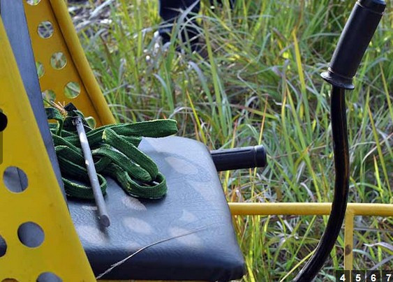Để đảm bảo an toàn cho những người xung quanh, anh Thắng cố định càng trực thăng bằng bốn dây cáp, sau đó dùng 4 chiếc đinh dài khoảng 40cm đóng chặt dây cáp xuống đất.